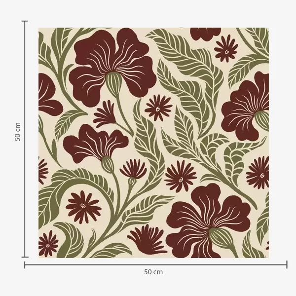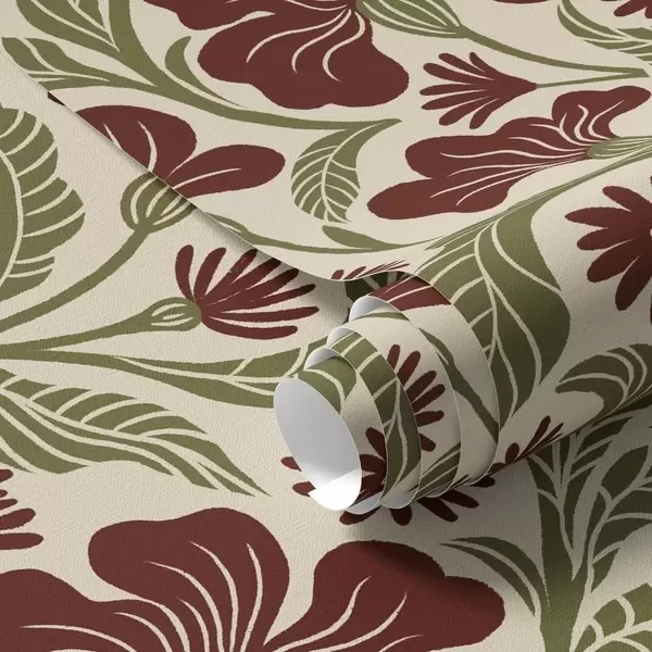 Tapetes Burgundijas ziedi ar zaļām lapām uz gaiša fona Nr. a00761