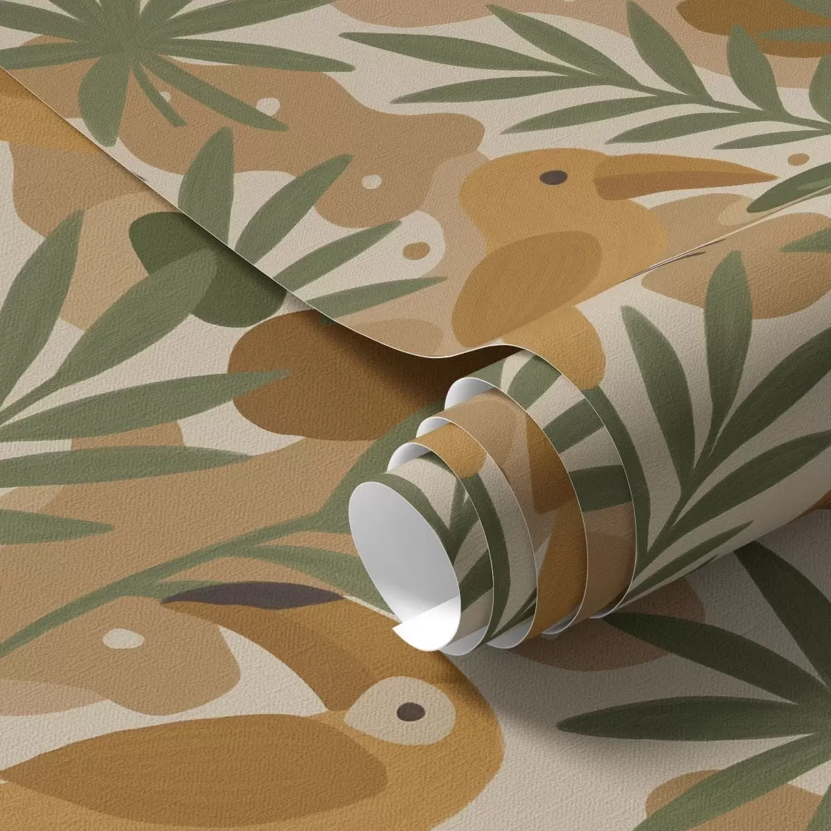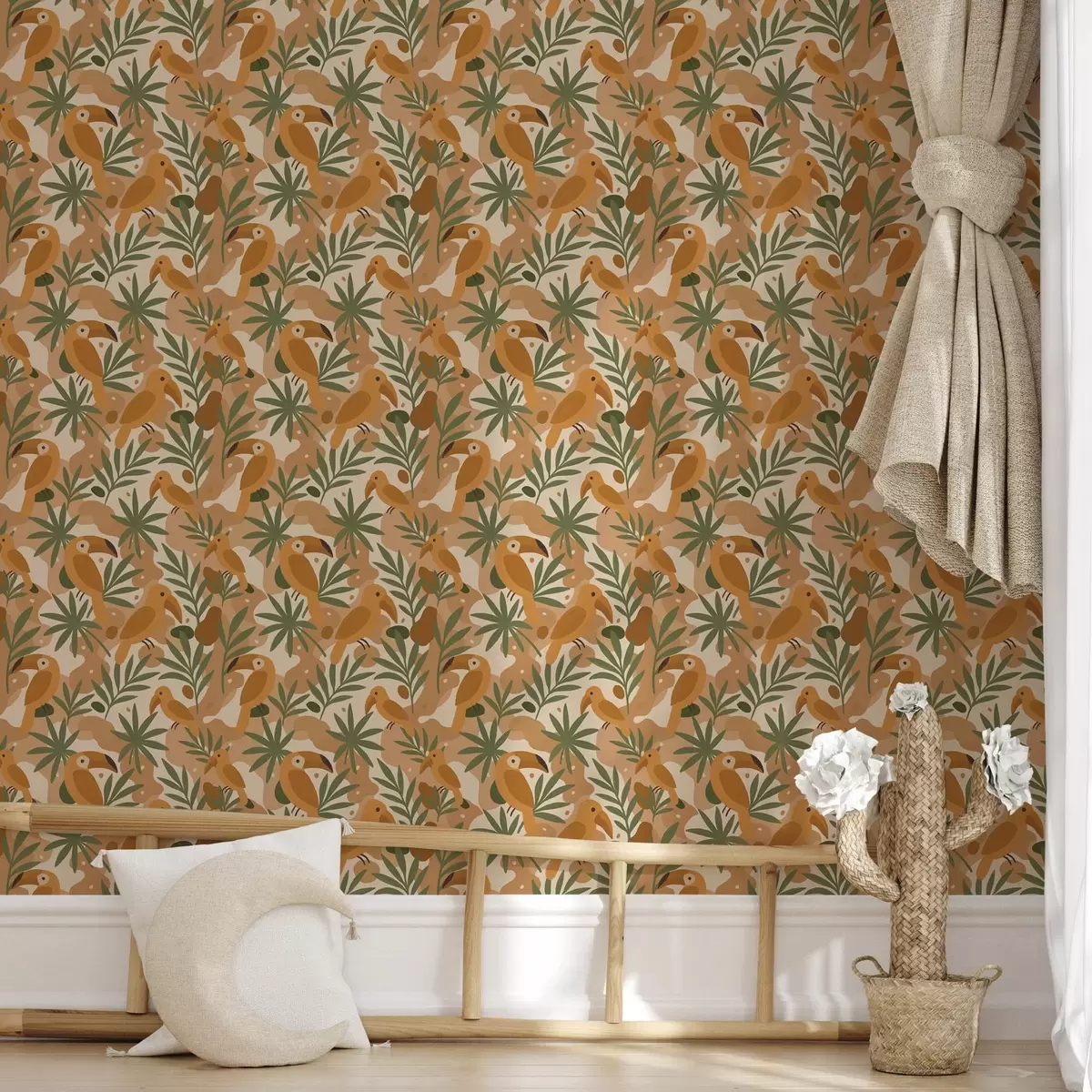 Tapetes Stilizēti tukani palmu lapās Nr. a00762