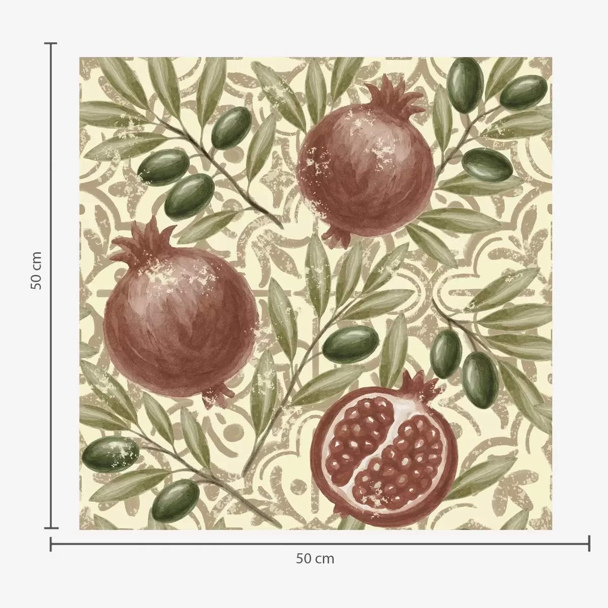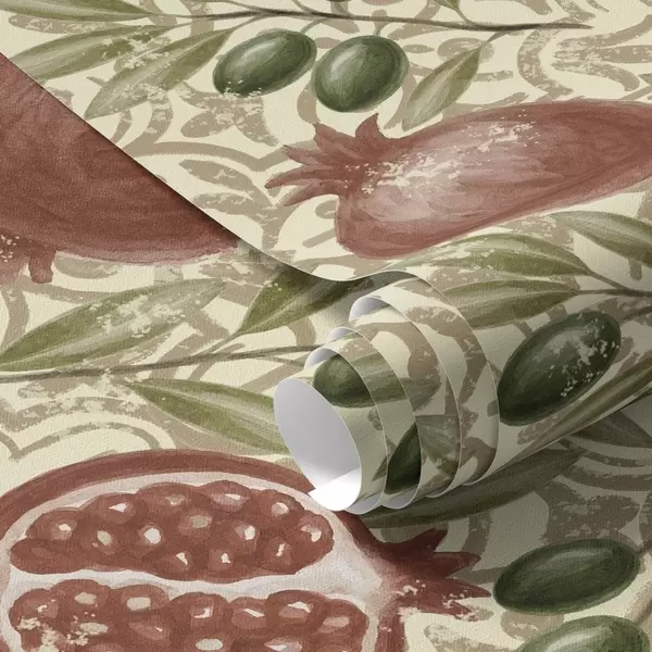 Tapetes Granātābolu un olīvu zari uz dekoratīva fona Nr. a00764