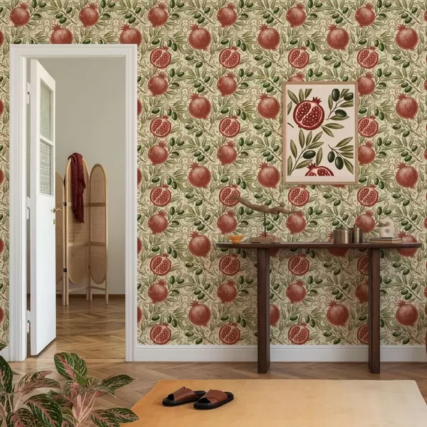 Tapetes Granātābolu un olīvu zari uz dekoratīva fona Nr. a00764