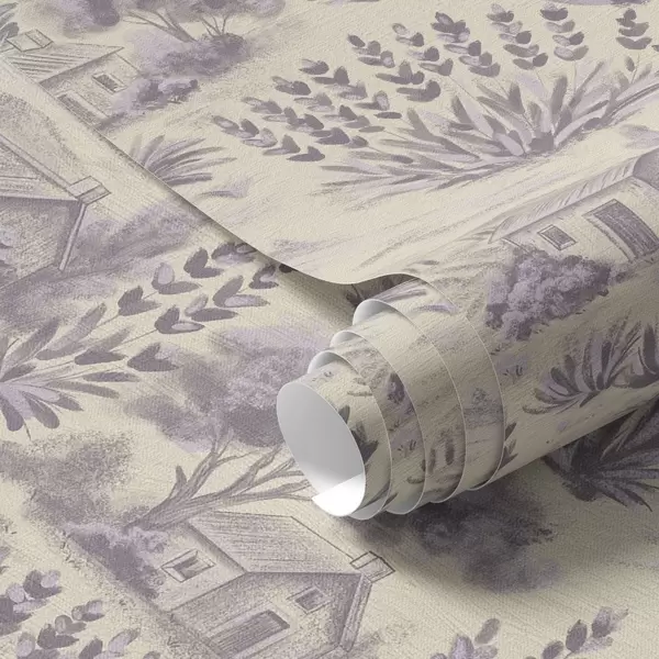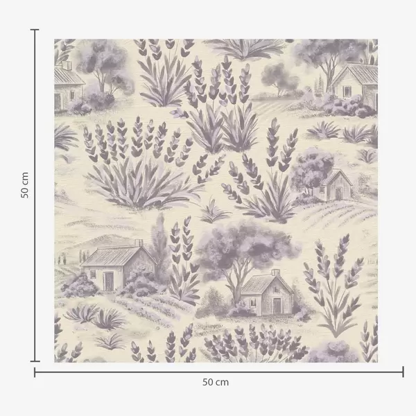 Tapetes Lavandas lauki un mājas pasteļtoņos Nr. a00765