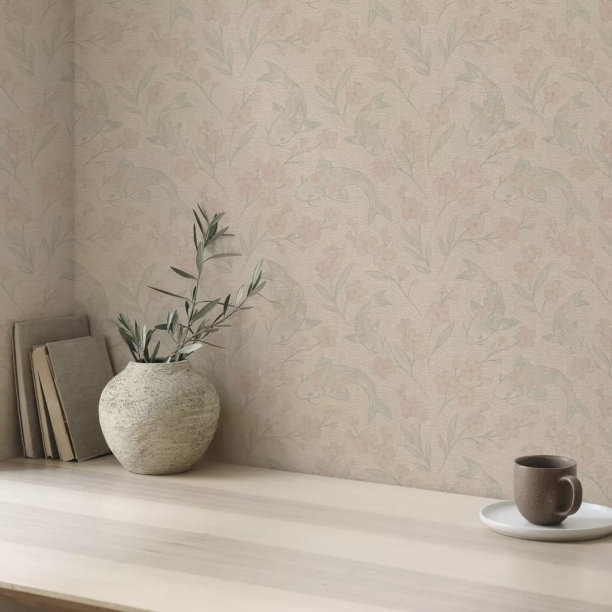 Tapetes Karpas starp ziediem maigās smilškrāsas un rozā toņos Nr. a00766