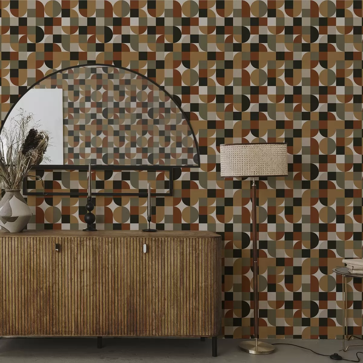 Tapetes Moduļu ģeometrija siltos zemes toņos Nr. a00770