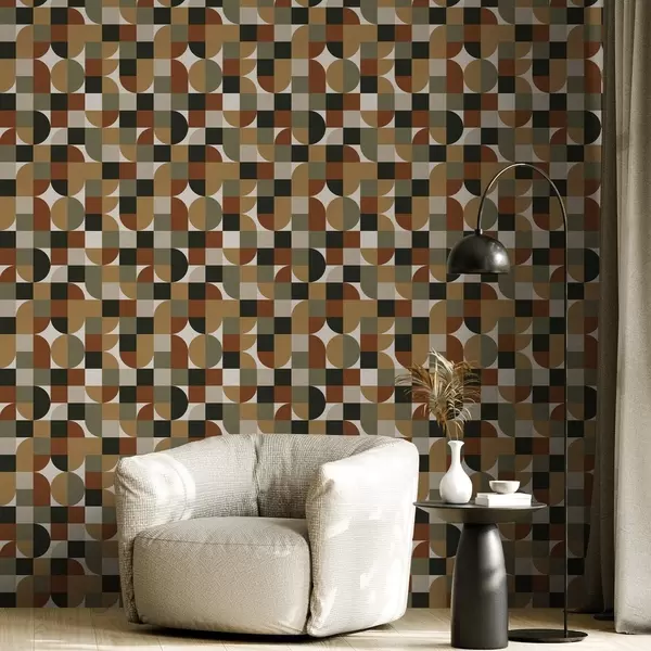 Tapetes Moduļu ģeometrija siltos zemes toņos Nr. a00770