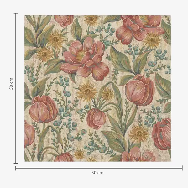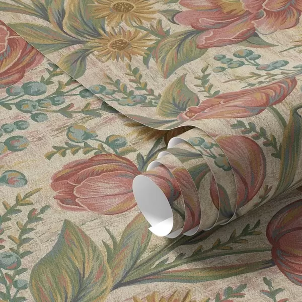 Tapetes Vintage tulpes un asteres, faktūru krēmkrāsas fons Nr. a00773