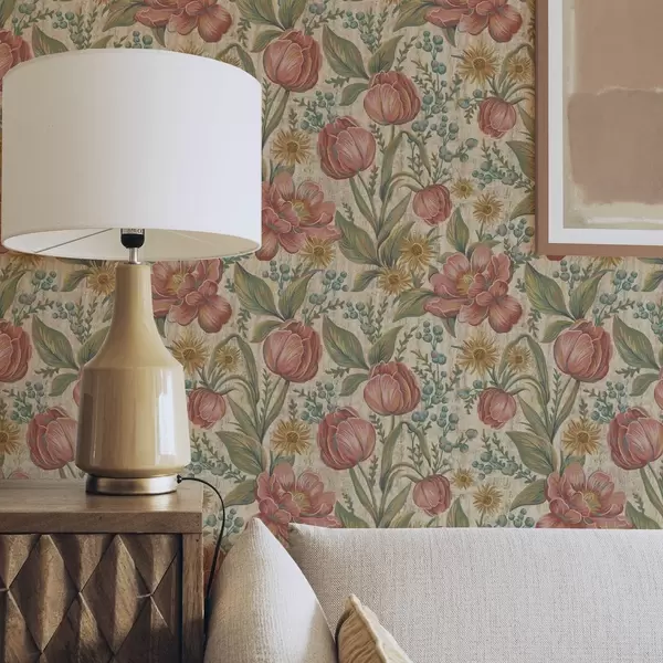 Tapetes Vintage tulpes un asteres, faktūru krēmkrāsas fons Nr. a00773