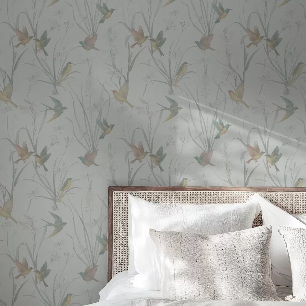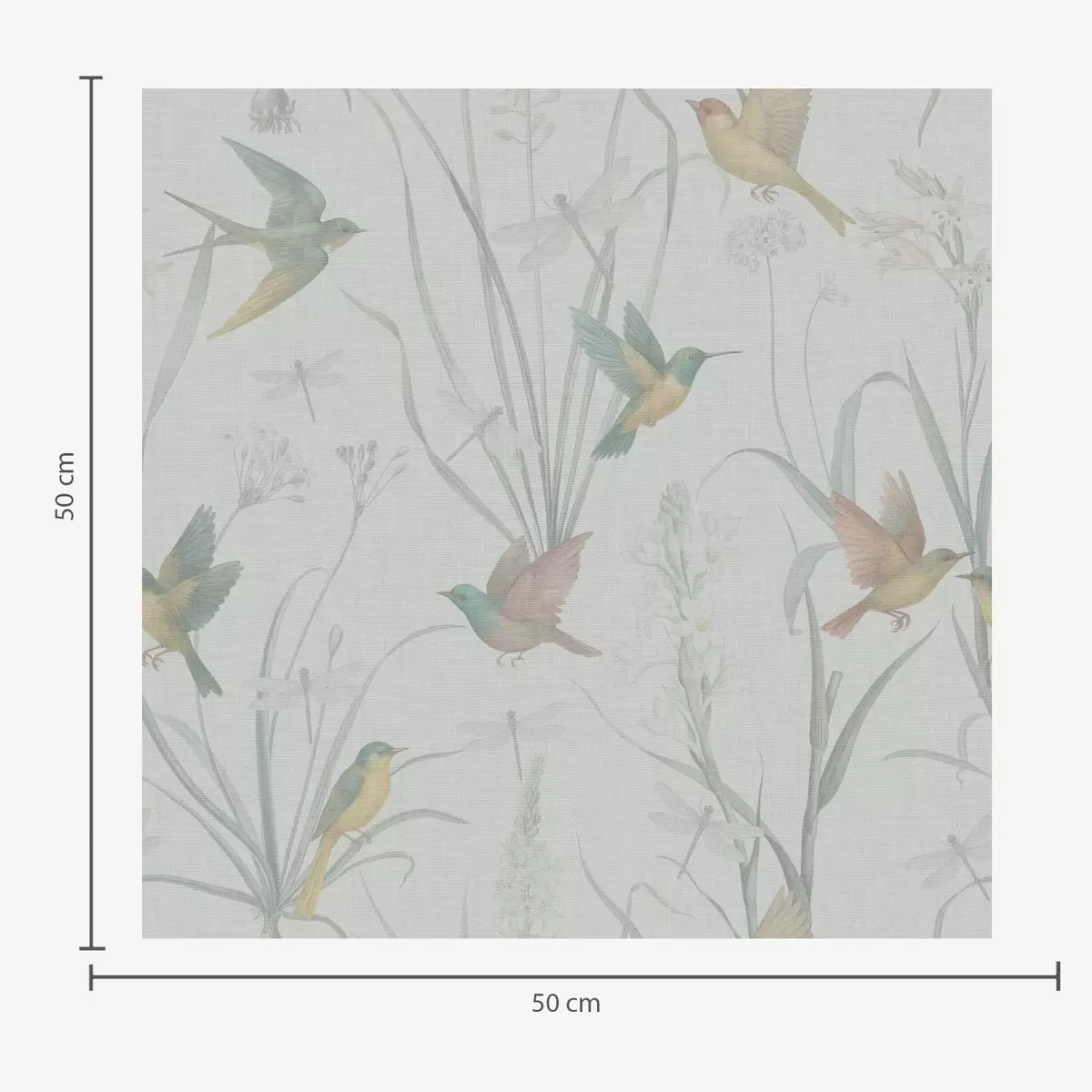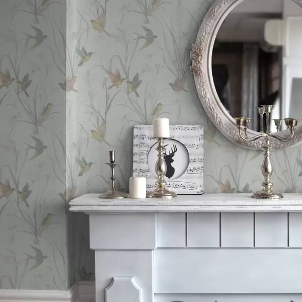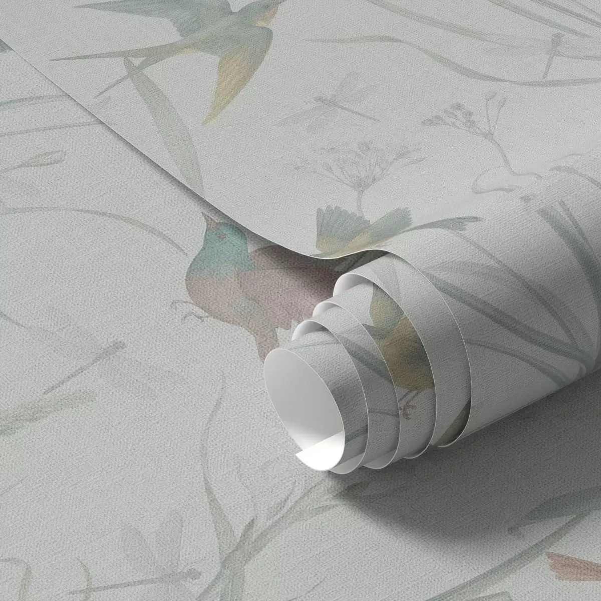Tapetes Putni starp pļavas zāli uz gaiši pelēka fona Nr. a00776v1