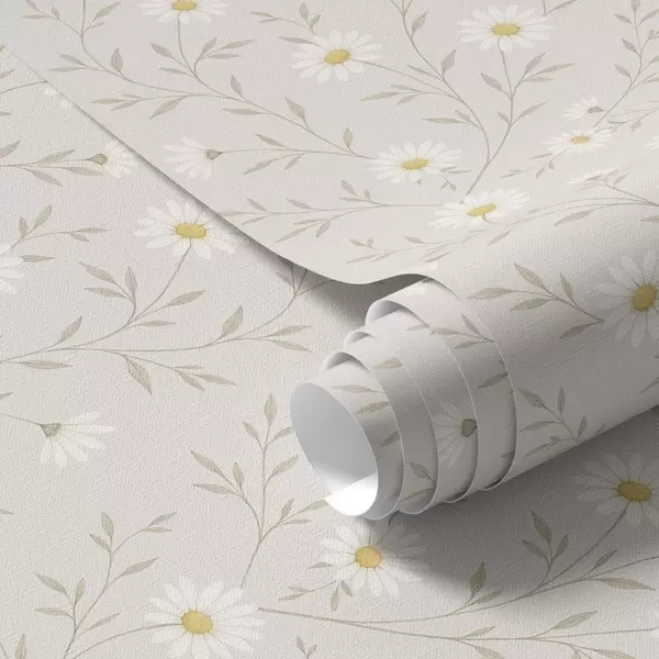 Tapetes Sīkas margrietiņas uz zariņiem, siltā smilškrāsā Nr. a00777