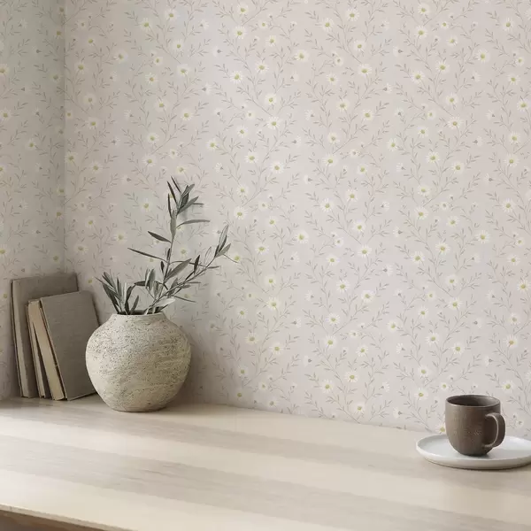 Tapetes Sīkas margrietiņas uz zariņiem, siltā smilškrāsā Nr. a00777