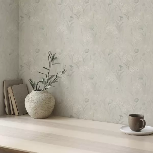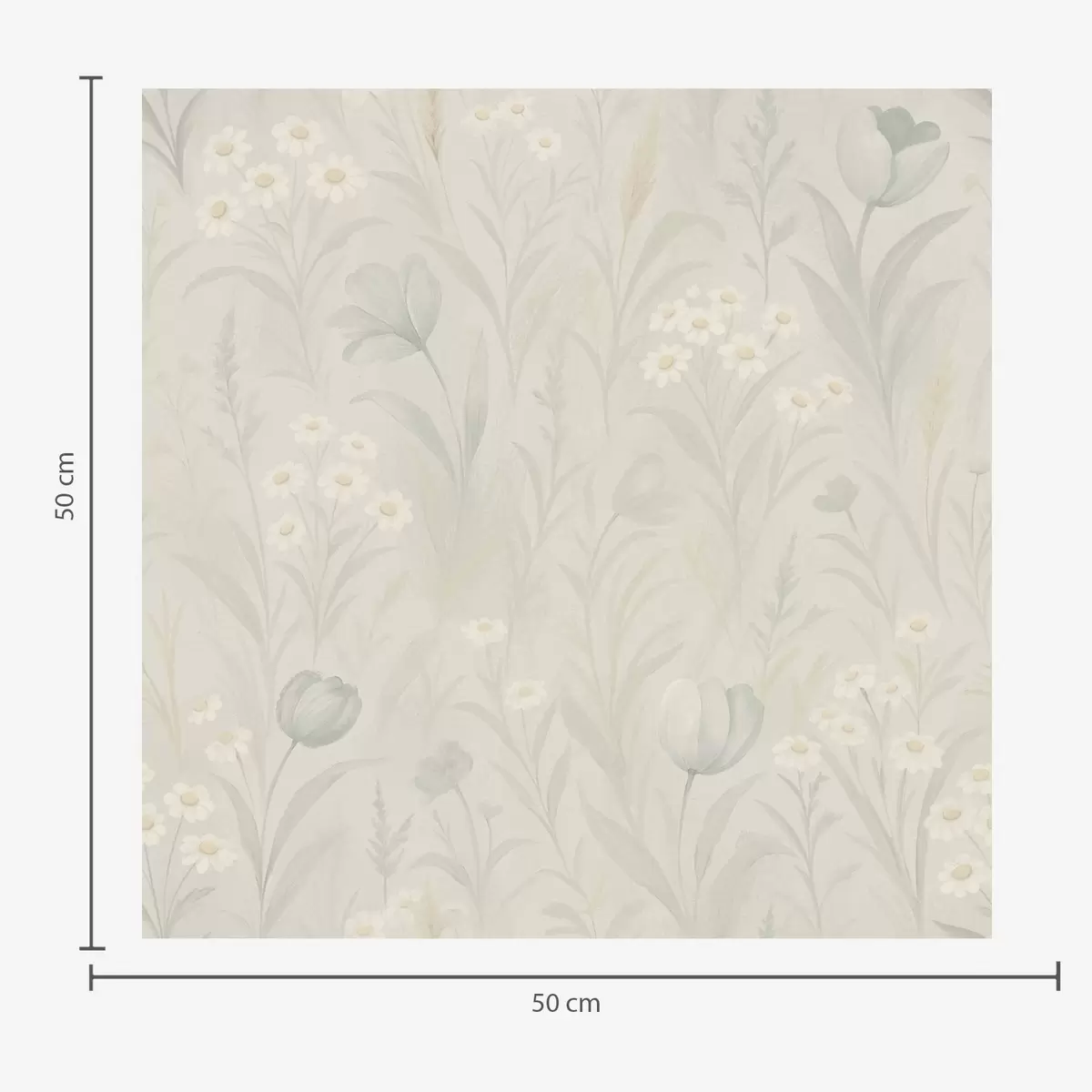 Tapetes Maiga pļava ar tulpēm un margrietiņām, pasteļtoņos salvija Nr. a00779