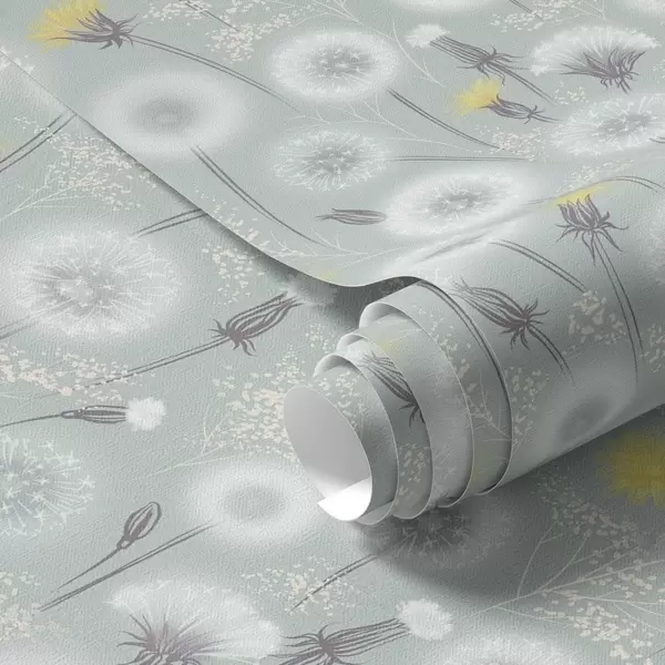 Tapetes Pūkainas pienenes un sēklas uz piparmētru fona Nr. a00790