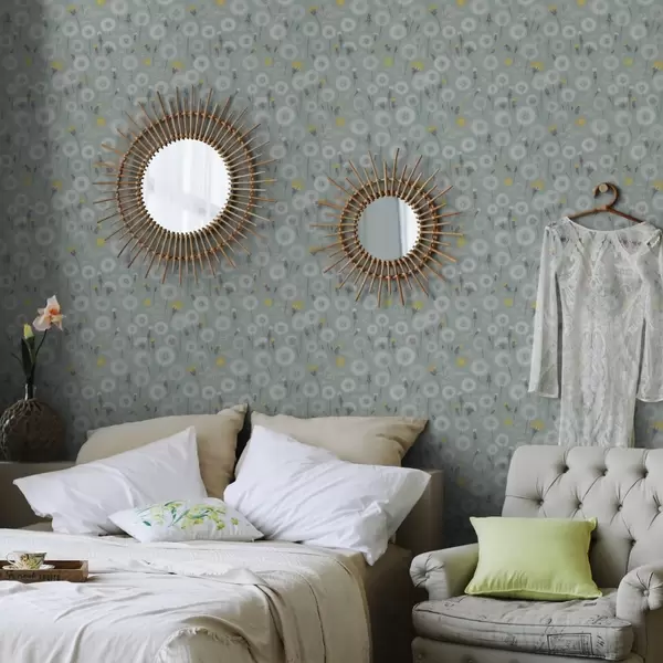 Tapetes Pūkainas pienenes un sēklas uz piparmētru fona Nr. a00790