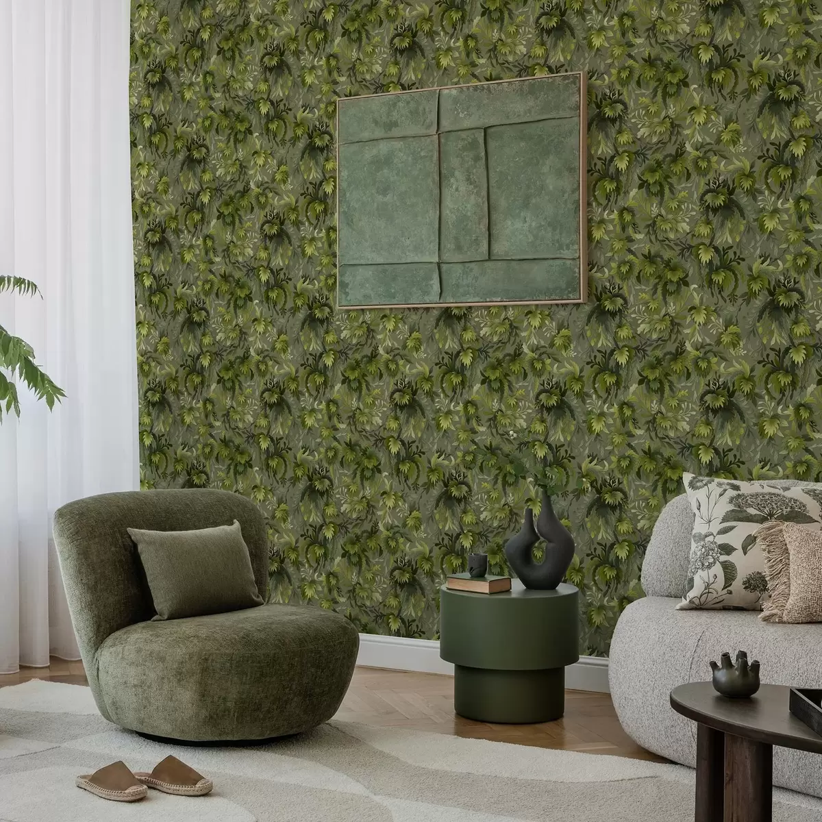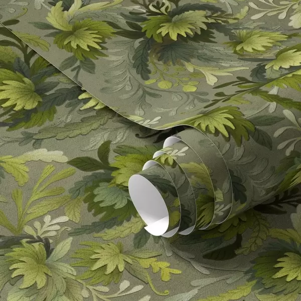 Tapetes Blīvs zaļš lapojums uz pelēkzaļa fona Nr. a00805v1