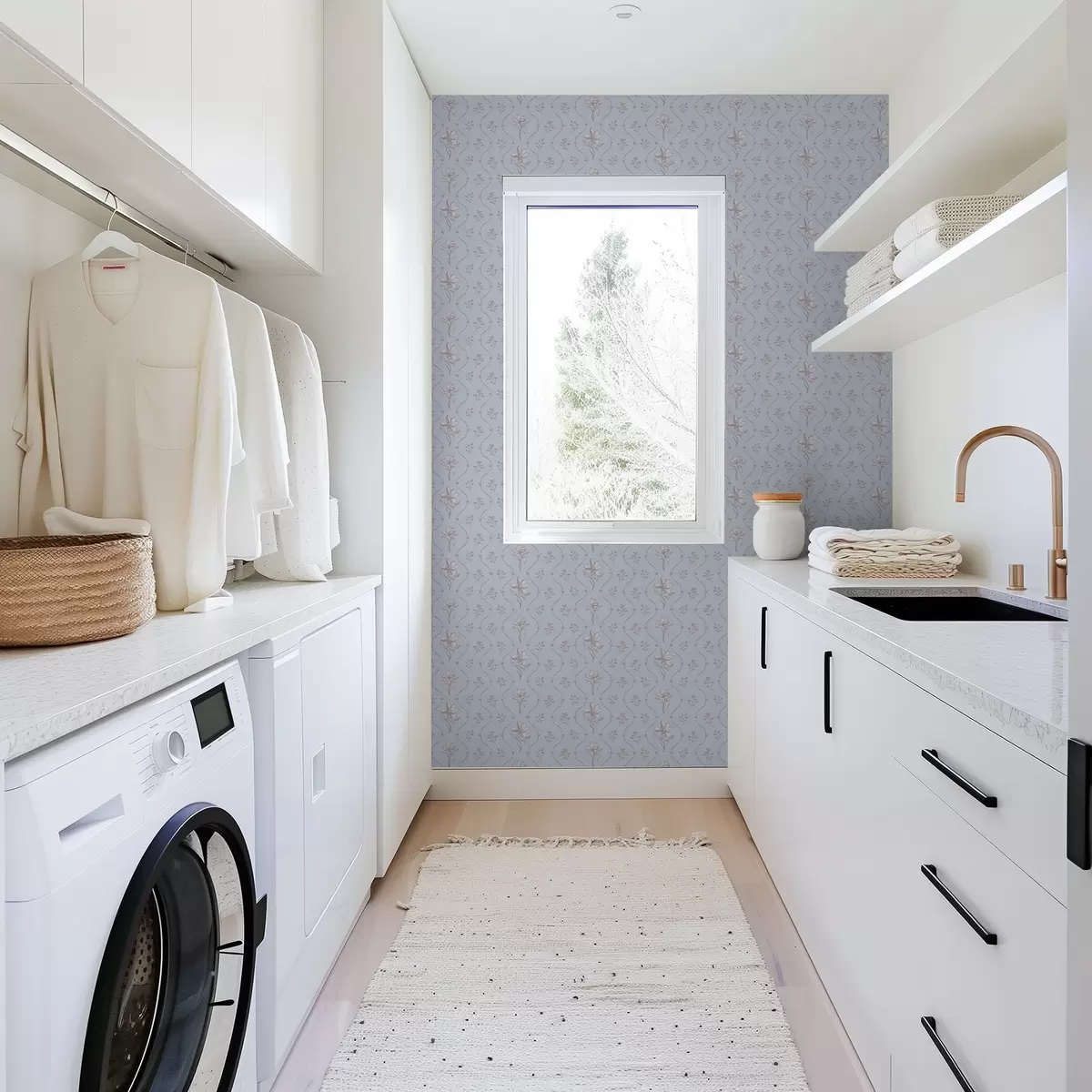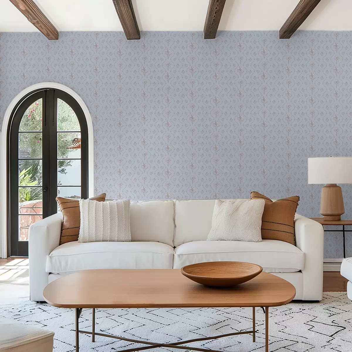 Tapetes Mazie ziedi un lentes gaiši zilos toņos Nr. a00808v1