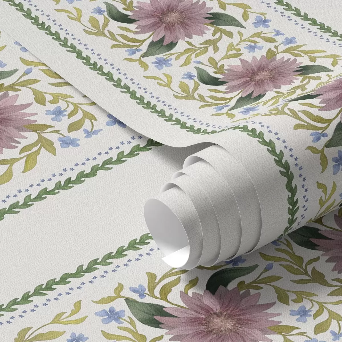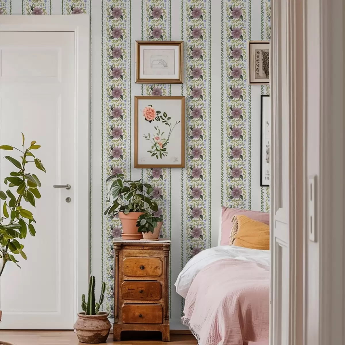 Tapetes Vertikālas ziedu svītras ziedu-zilos toņos Nr. a00809