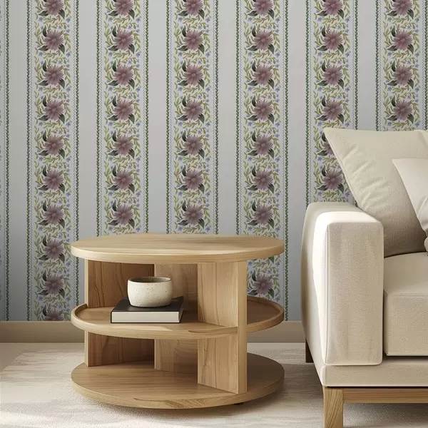 Tapetes Vertikālas ziedu svītras ziedu-zilos toņos Nr. a00809