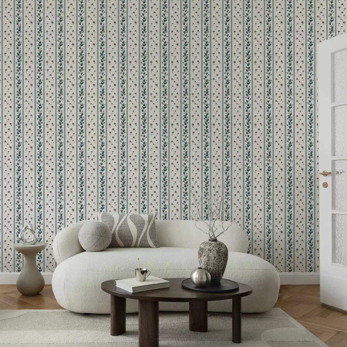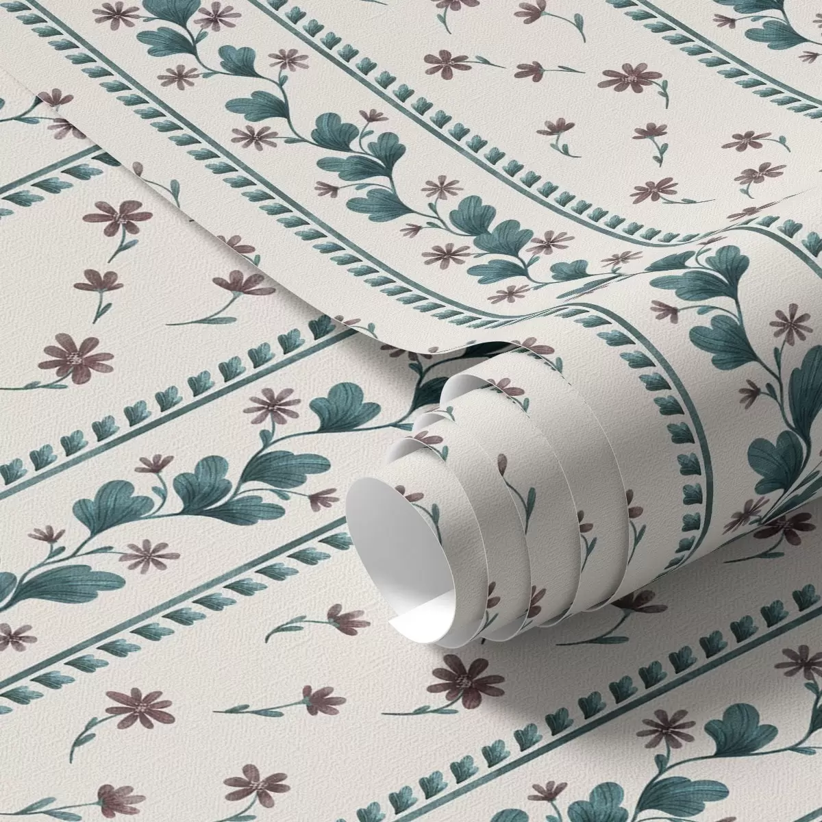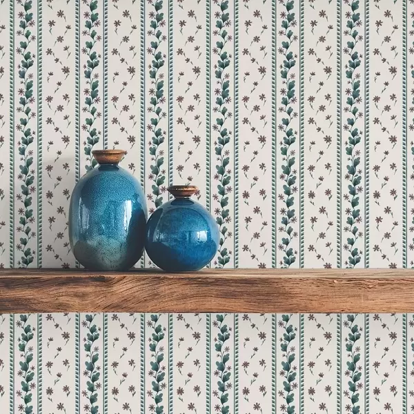Tapetes Vertikālas ziedu svītras zilo-brūnos toņos Nr. a00811