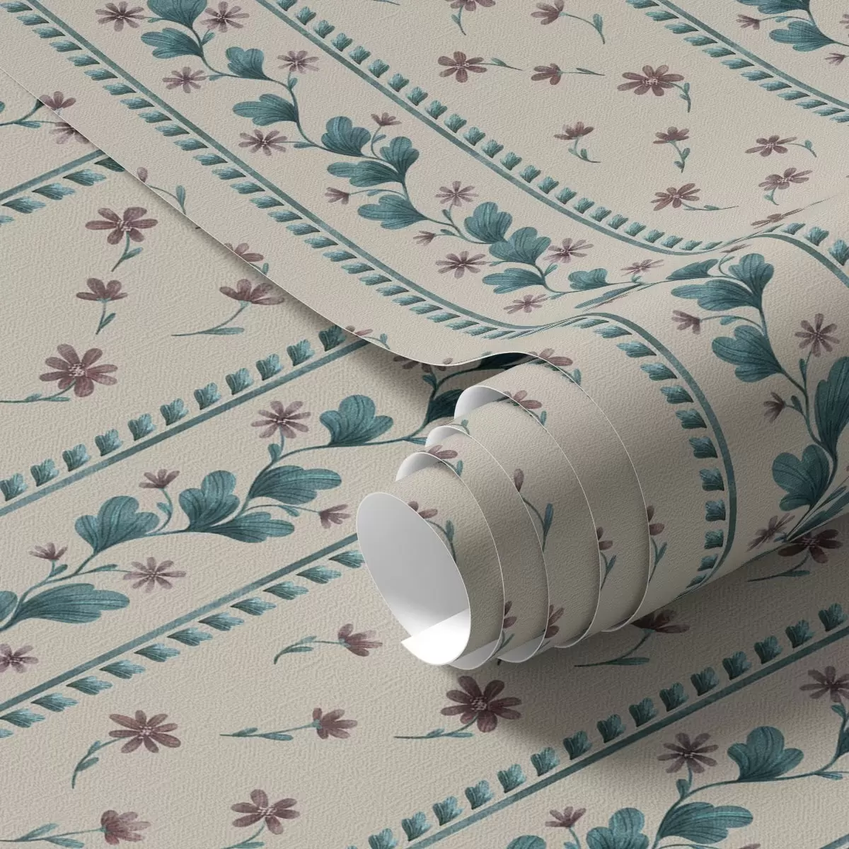 Tapetes Vertikālas ziedu svītras zilo-brūnos toņos Nr. a00811v1