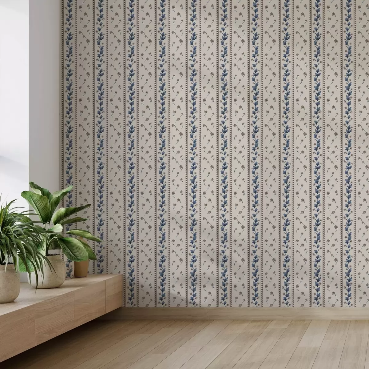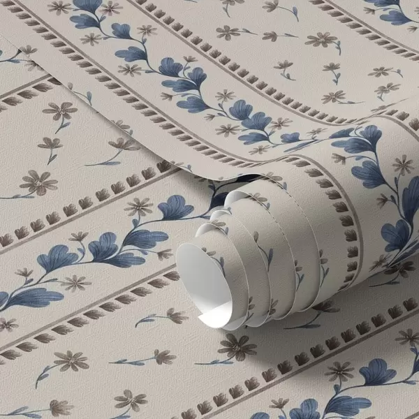 Tapetes Vertikālas ziedu svītras zilo-brūnos toņos Nr. a00811v3