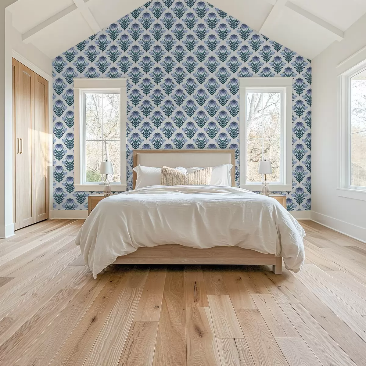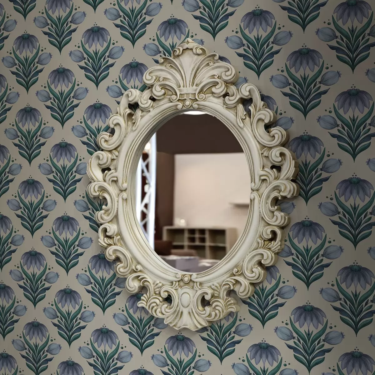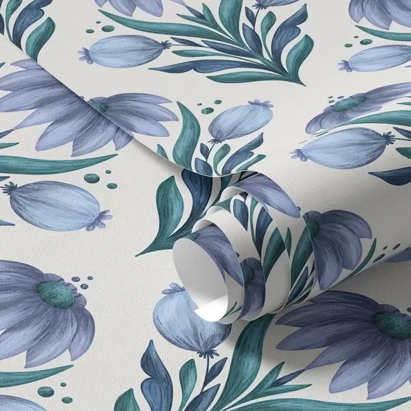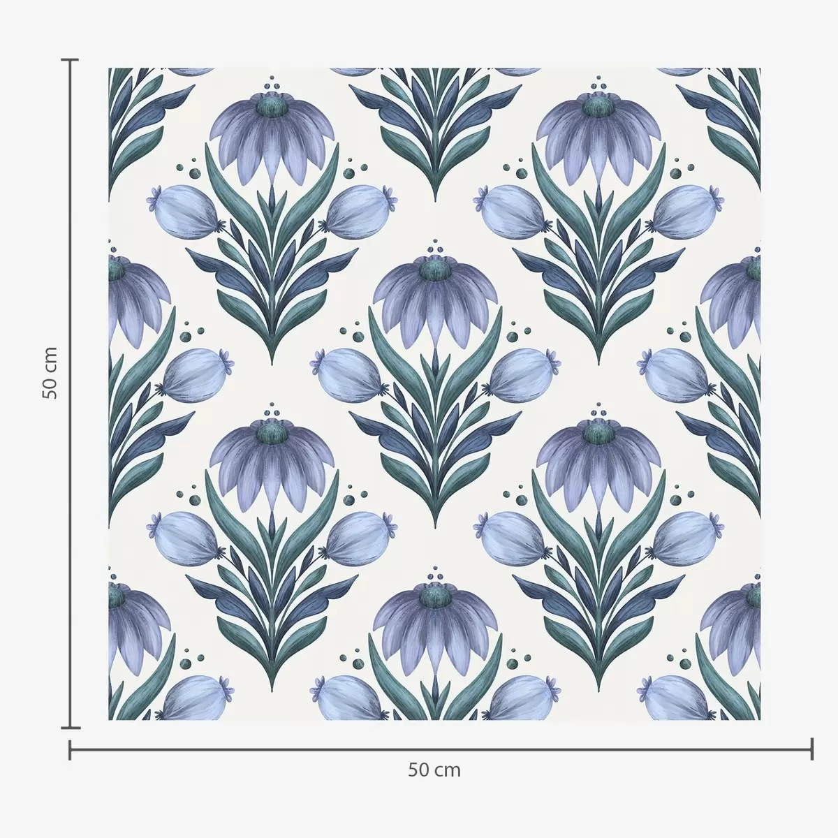 Tapetes Simetriskas ziedu ornamenta zils-balts toņos Nr. a00812v2