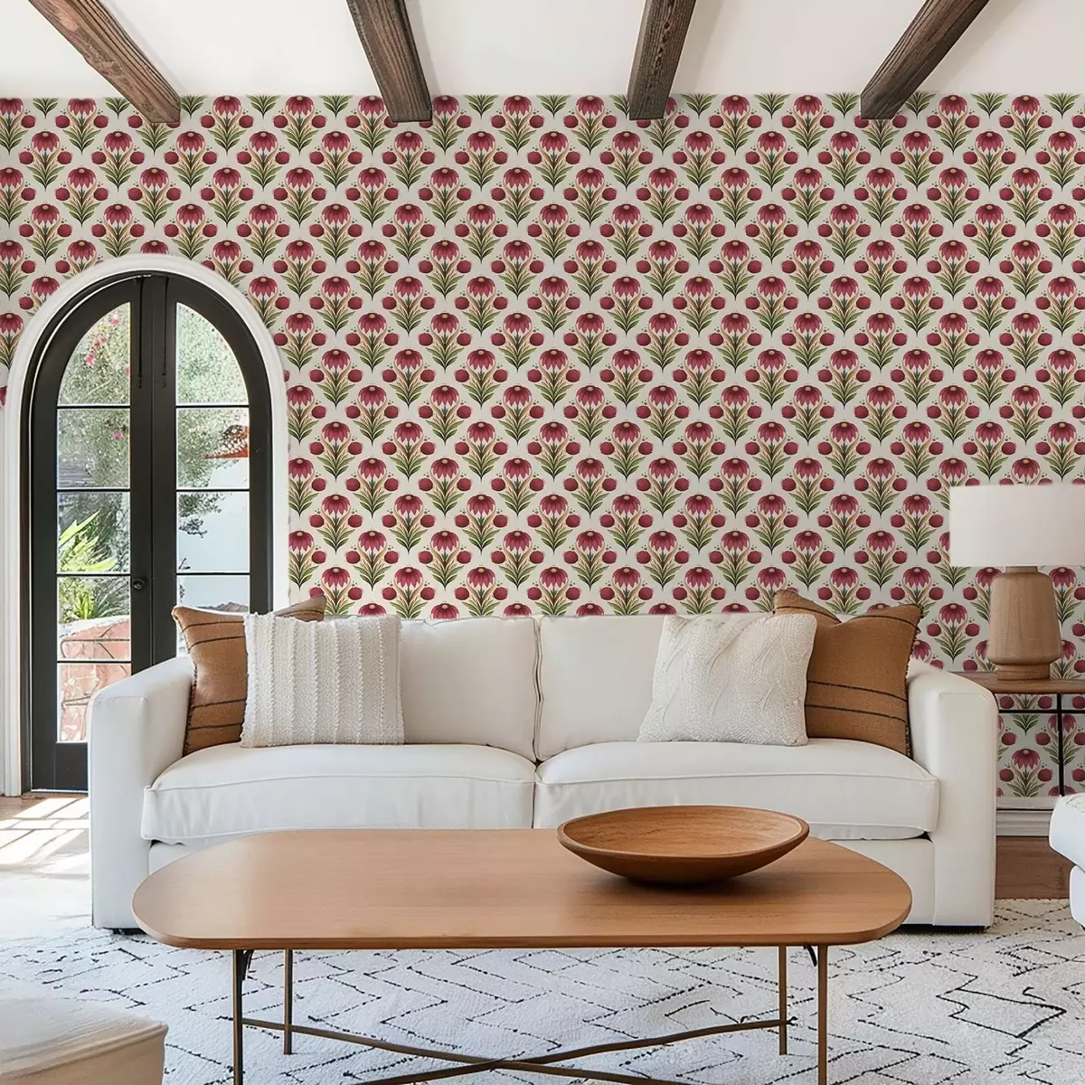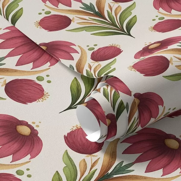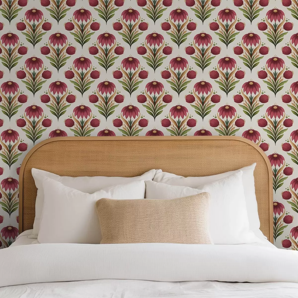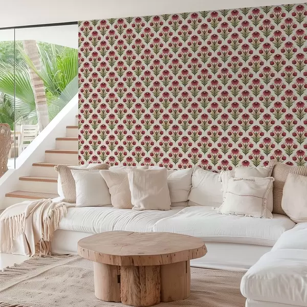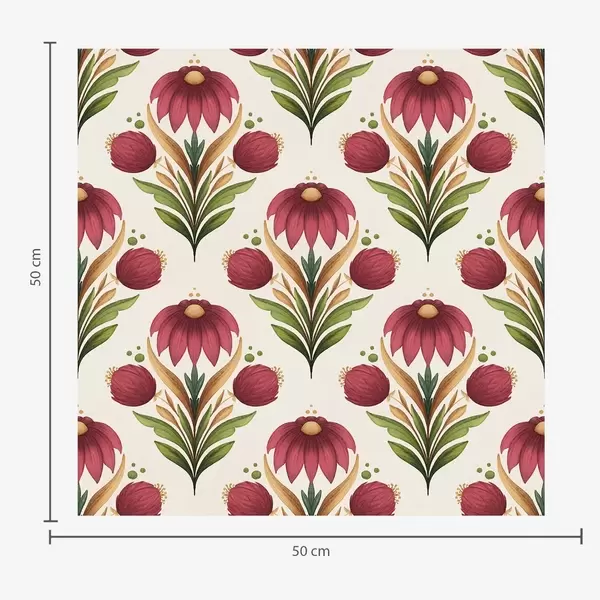 Tapetes Simetriskas ziedu ornamentika bagātīgās sarkano un zaļo toņu gammas Nr. a00812v4