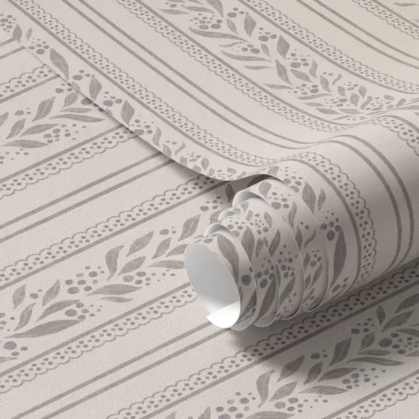 Tapetes Svītras ar mežģīnēm un pelēkbrūniem zariņiem Nr. a00814