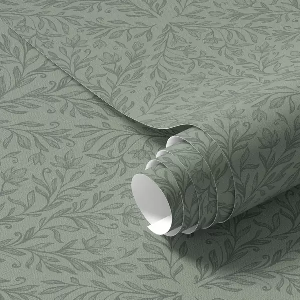 Tapetes Smalkas botāniskas damasta auduma audums klusā zaļā krāsā Nr. a00815v1