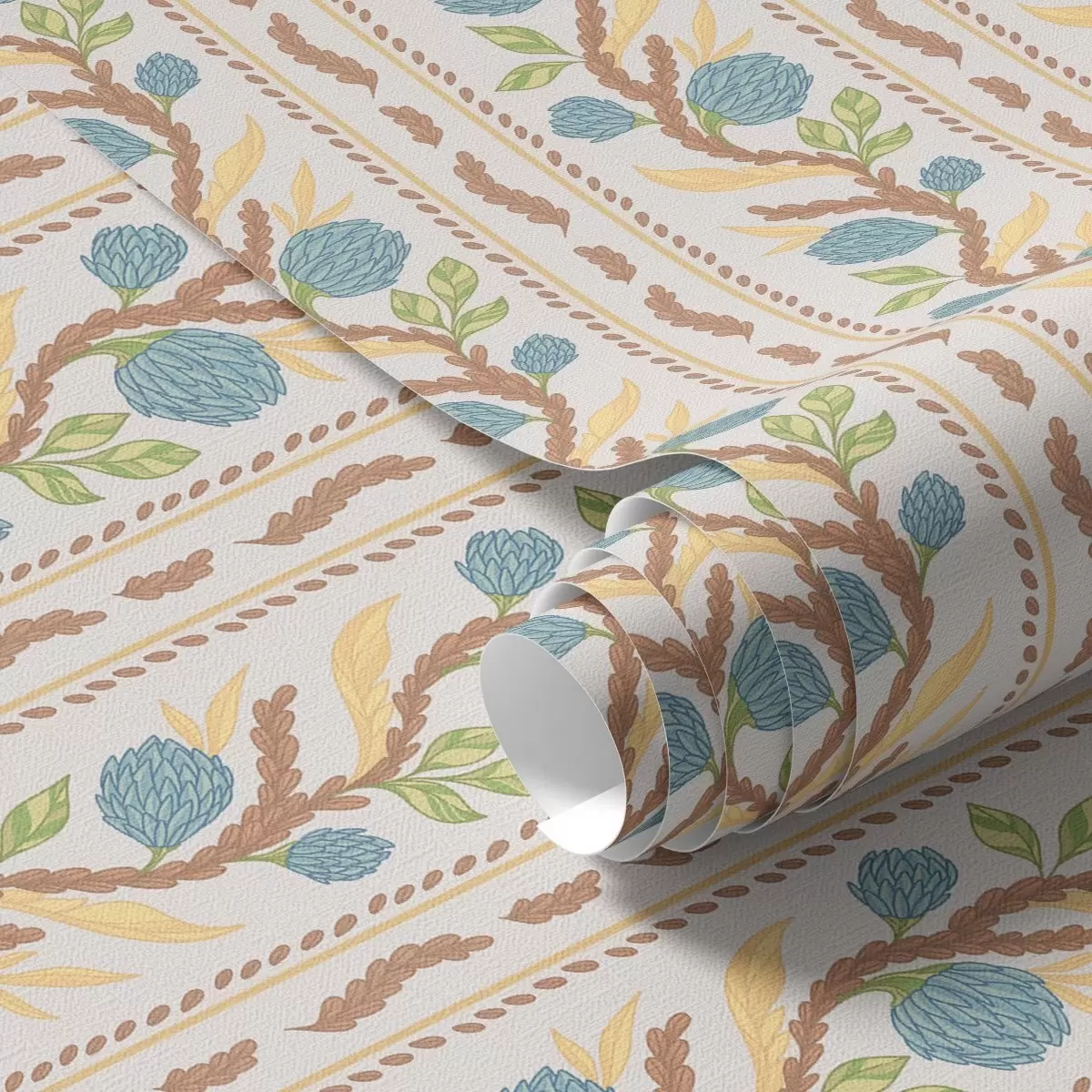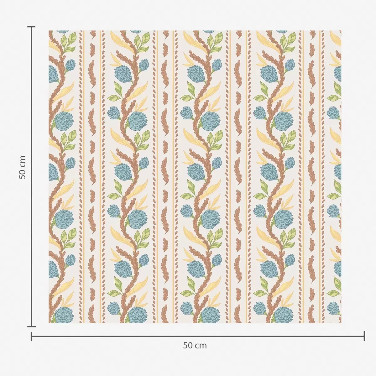 Tapetes Vertikālas pušķa svītras ar ziliem ziediem uz siltā fona Nr. a00816v3