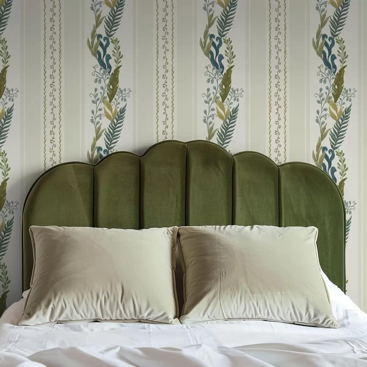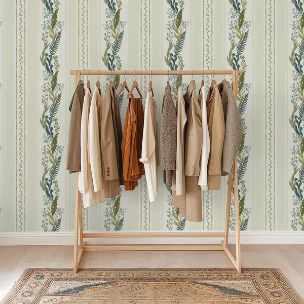 Tapetes Plašas svītras ar gleznieciskām zarām zilo-olīvu toņos Nr. a00825