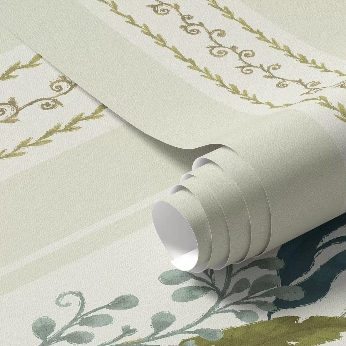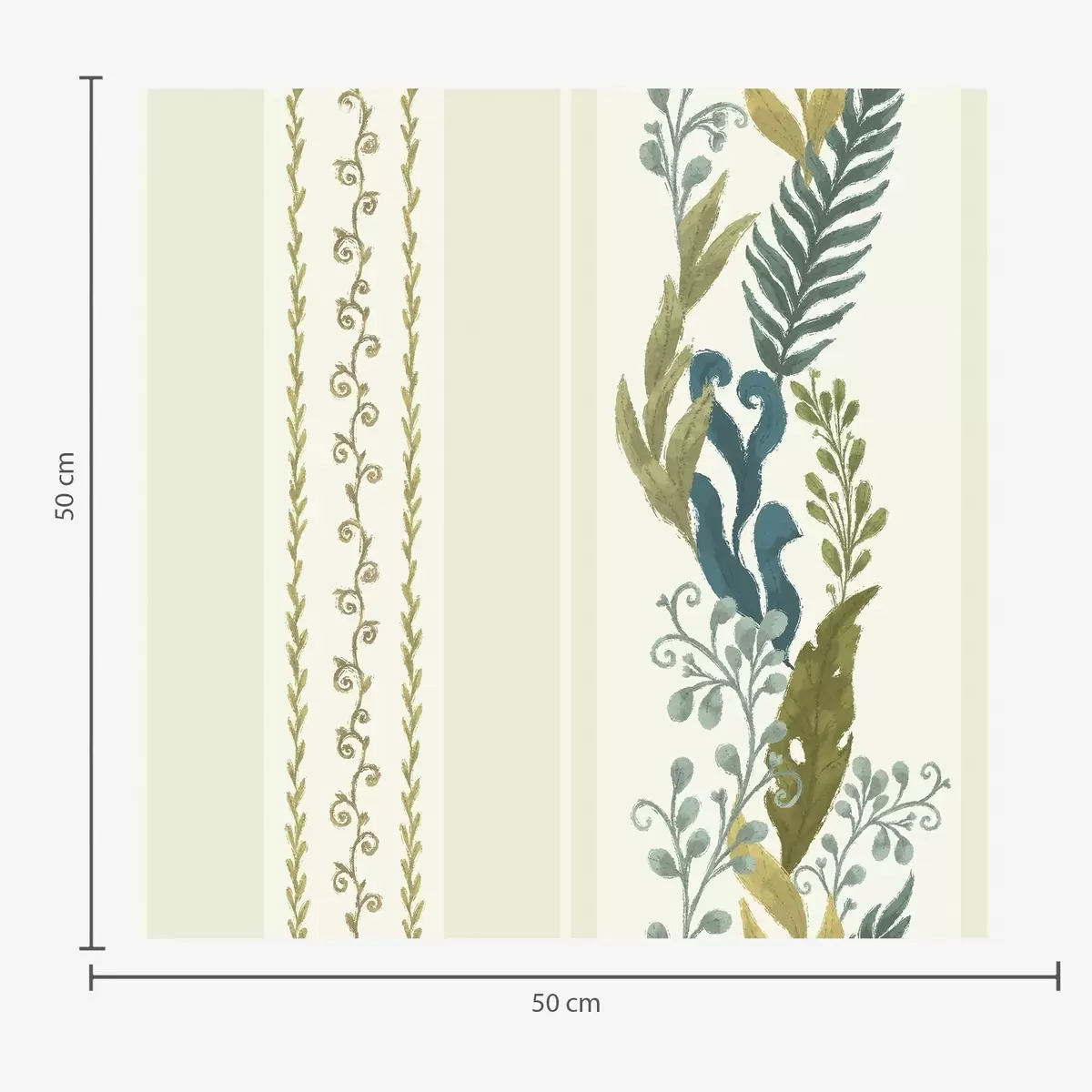 Tapetes Plašas svītras ar gleznieciskām zarām zilo-olīvu toņos Nr. a00825