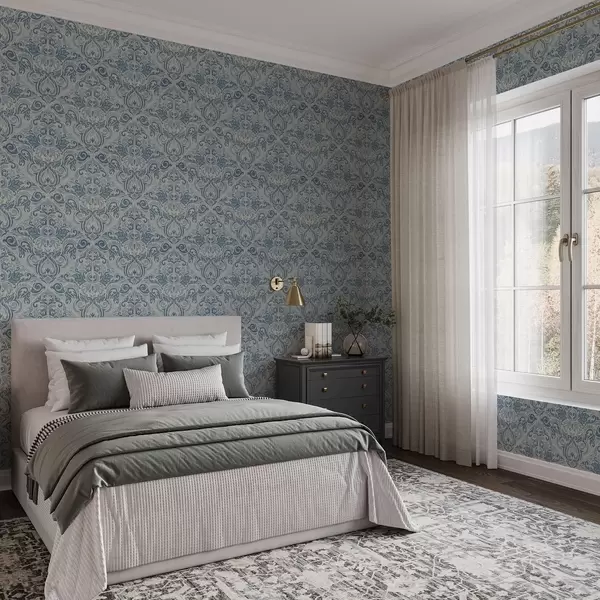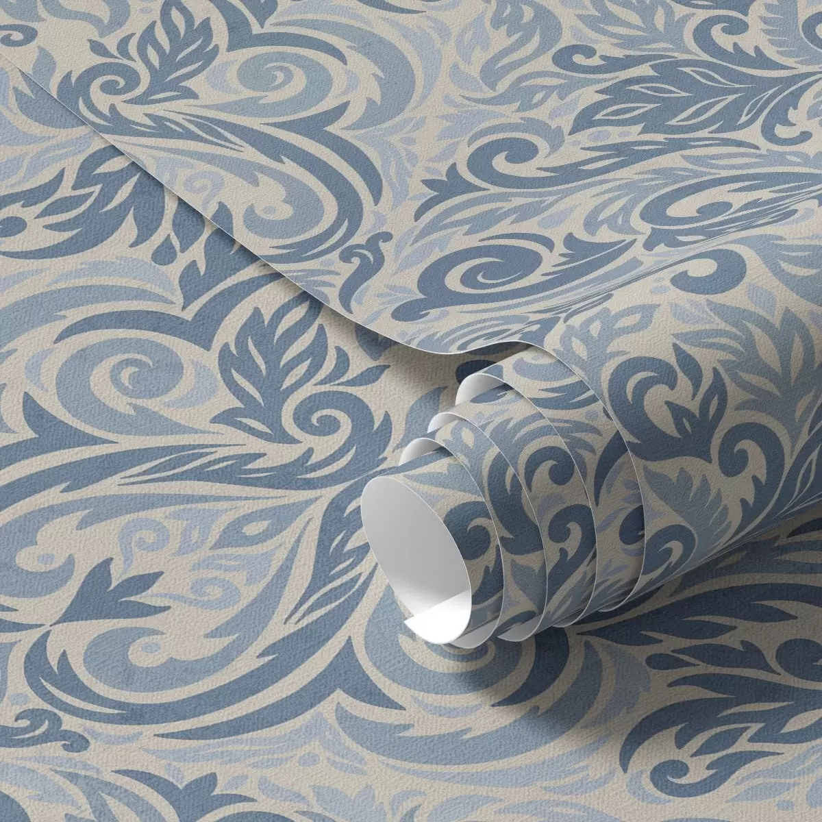 Tapetes Klasisks damasts, zili motīvi uz krēmkrāsas fona Nr. a00826v1