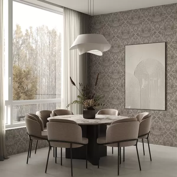 Tapetes Damasts siltos pelēkbrūnos toņos uz gaiša fona Nr. a00826v3