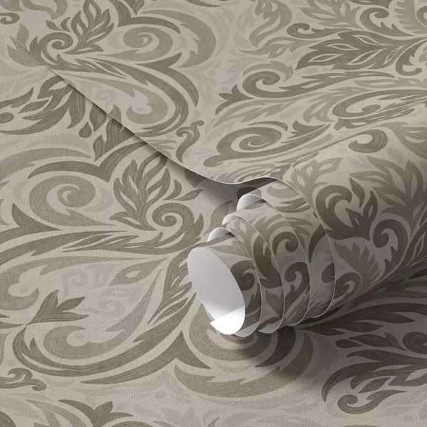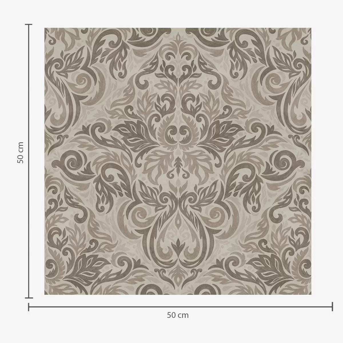 Tapetes Damasts siltos pelēkbrūnos toņos uz gaiša fona Nr. a00826v3
