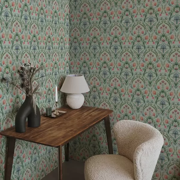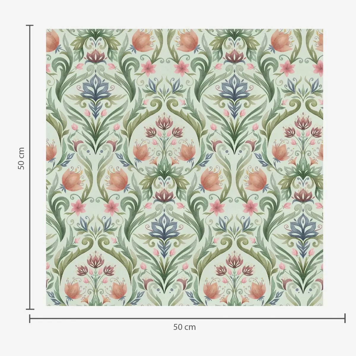 Tapetes Simetriskas ziedu ornamentika, piparmētru krāsas toņos Nr. a00827v1