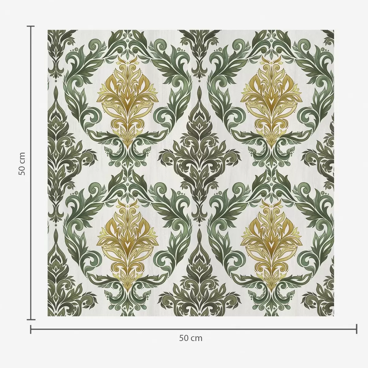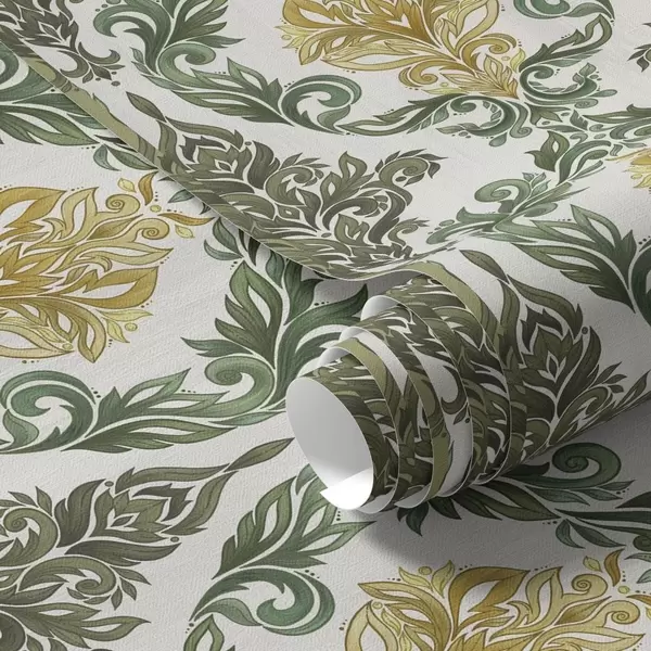 Tapetes Damasts ar zaļām volūtām uz gaiša fona Nr. a00828v1