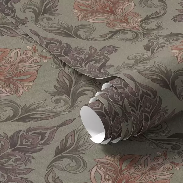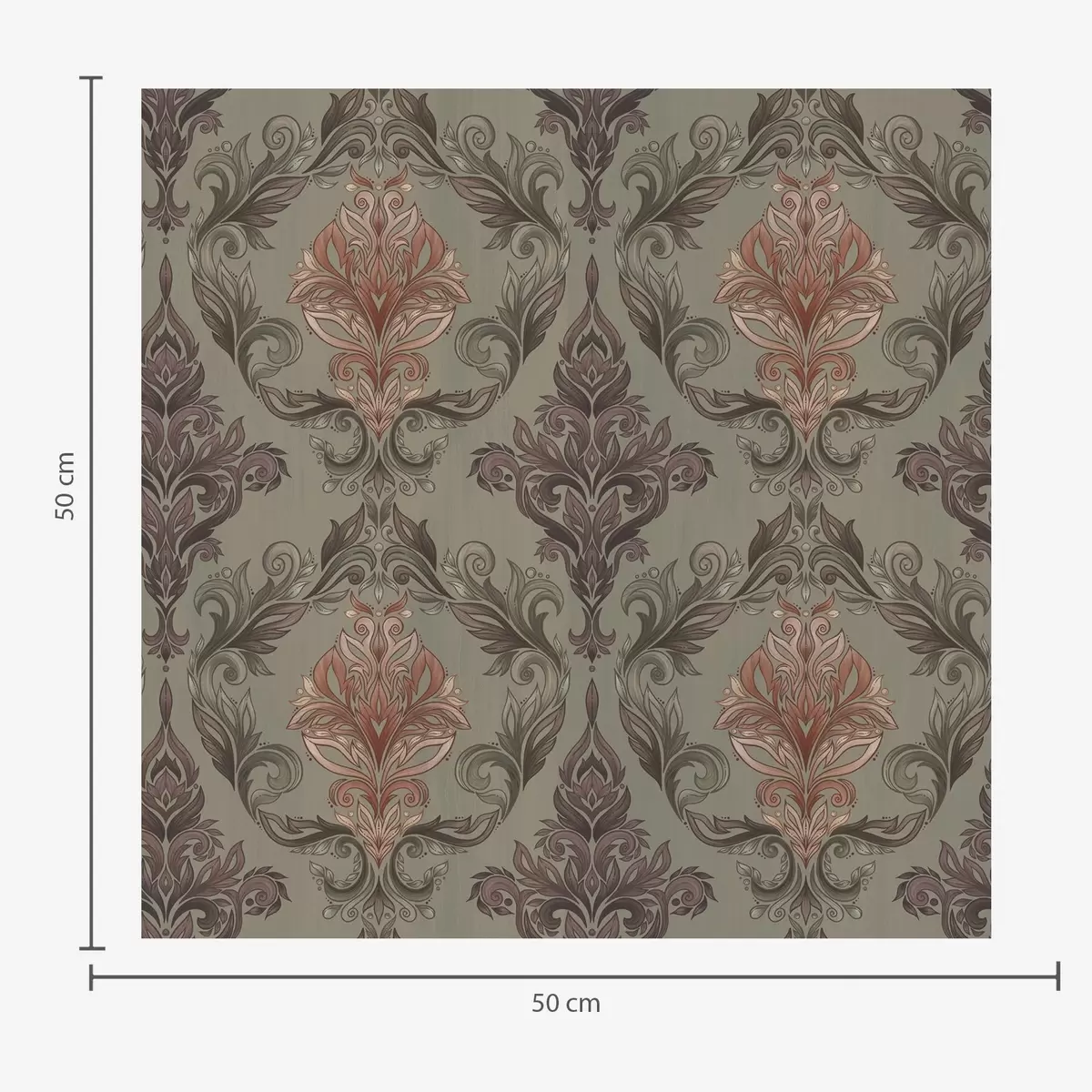 Tapetes Terakotas damasts uz klusināta olīvu fona Nr. a00828v3
