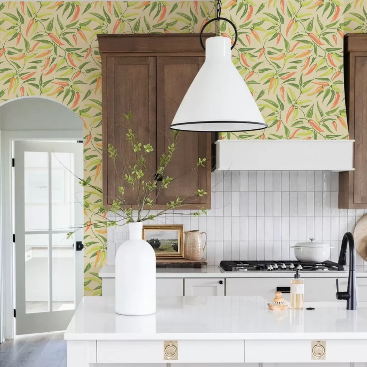 Tapetes Zari ar sarkaniem un zaļiem pipariem uz siltā fona Nr. a00829