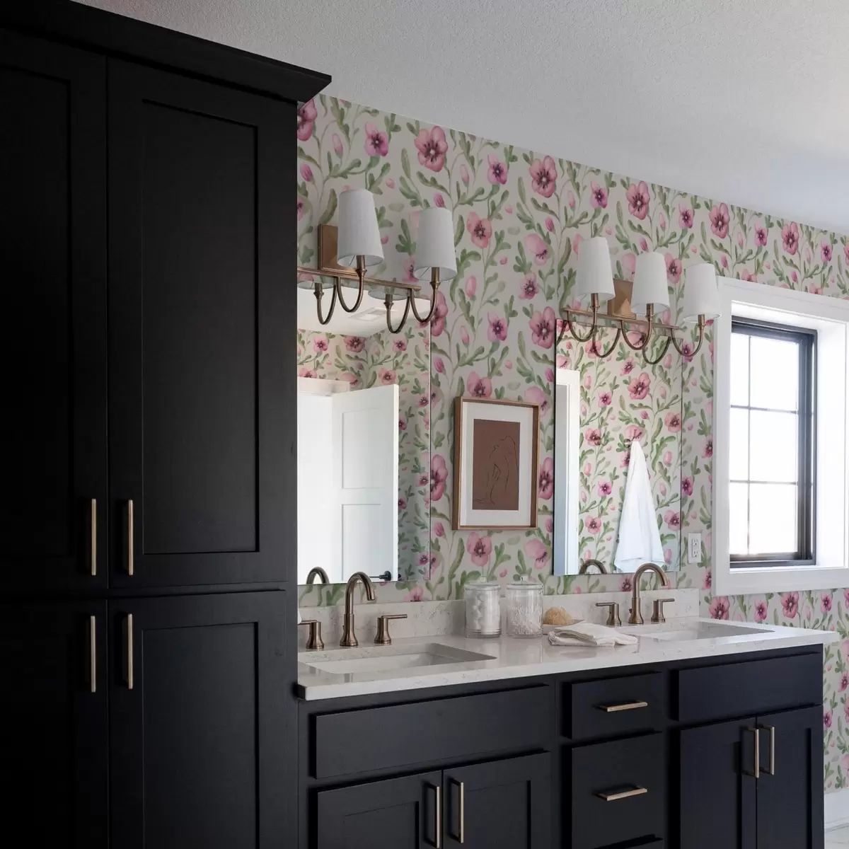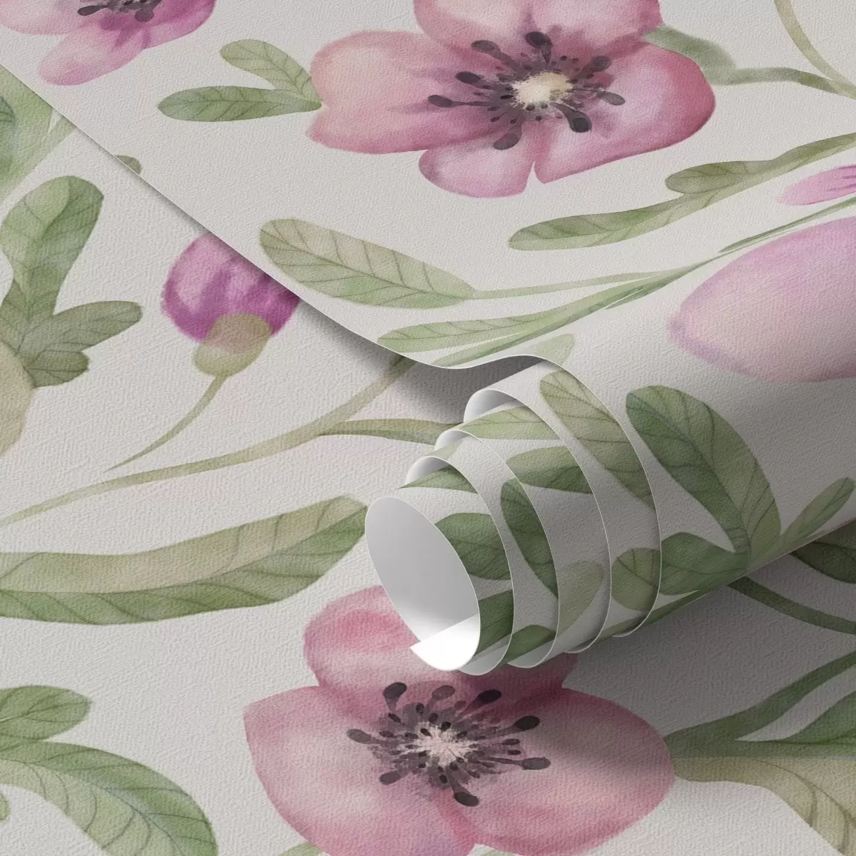 Tapetes Delikātas rozā magones ar lapām akvareļa tehnikā Nr. a00830