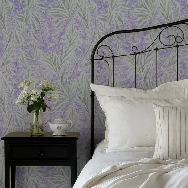 Tapetes Lavandas zari violetos toņos uz gaiša fona Nr. a00835