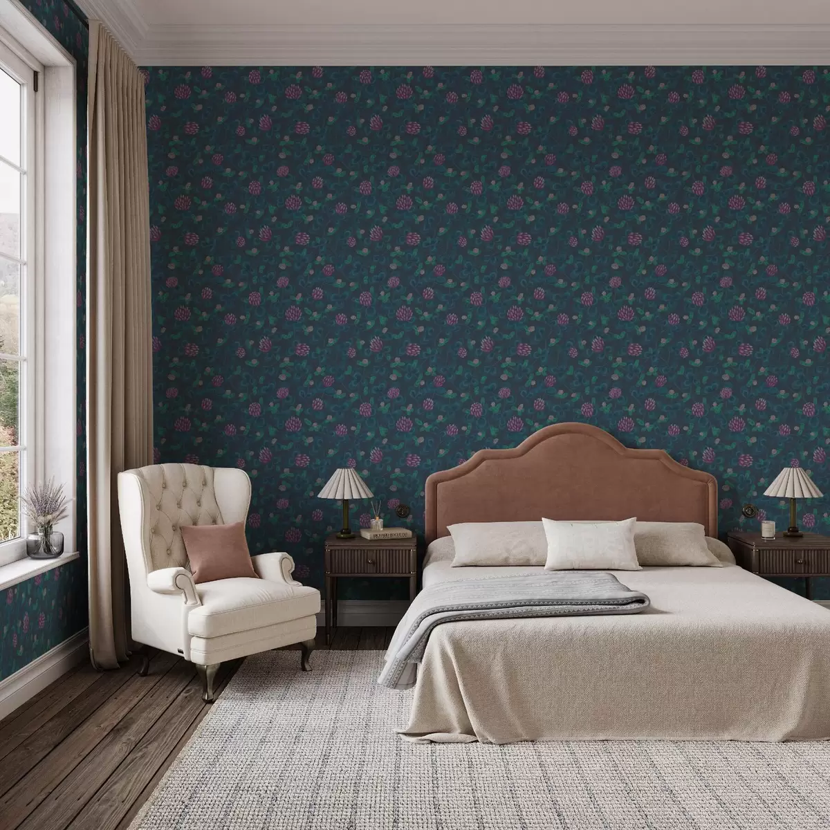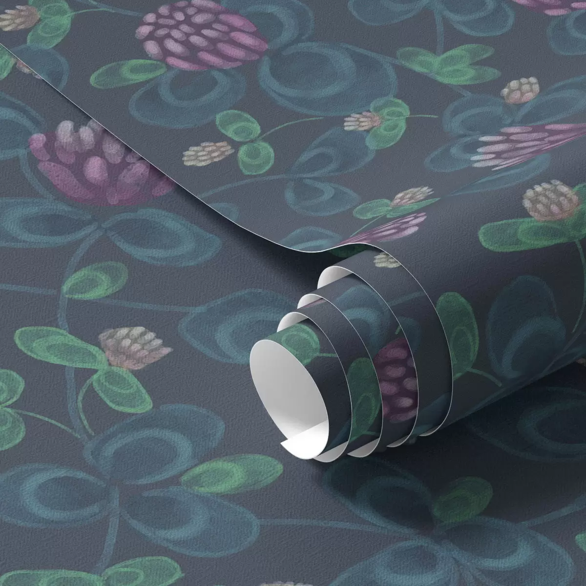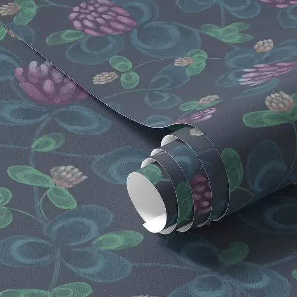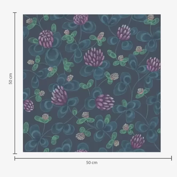 Tapetes Āboliņš ar violeti ziediem uz tumši zila fona Nr. a00836