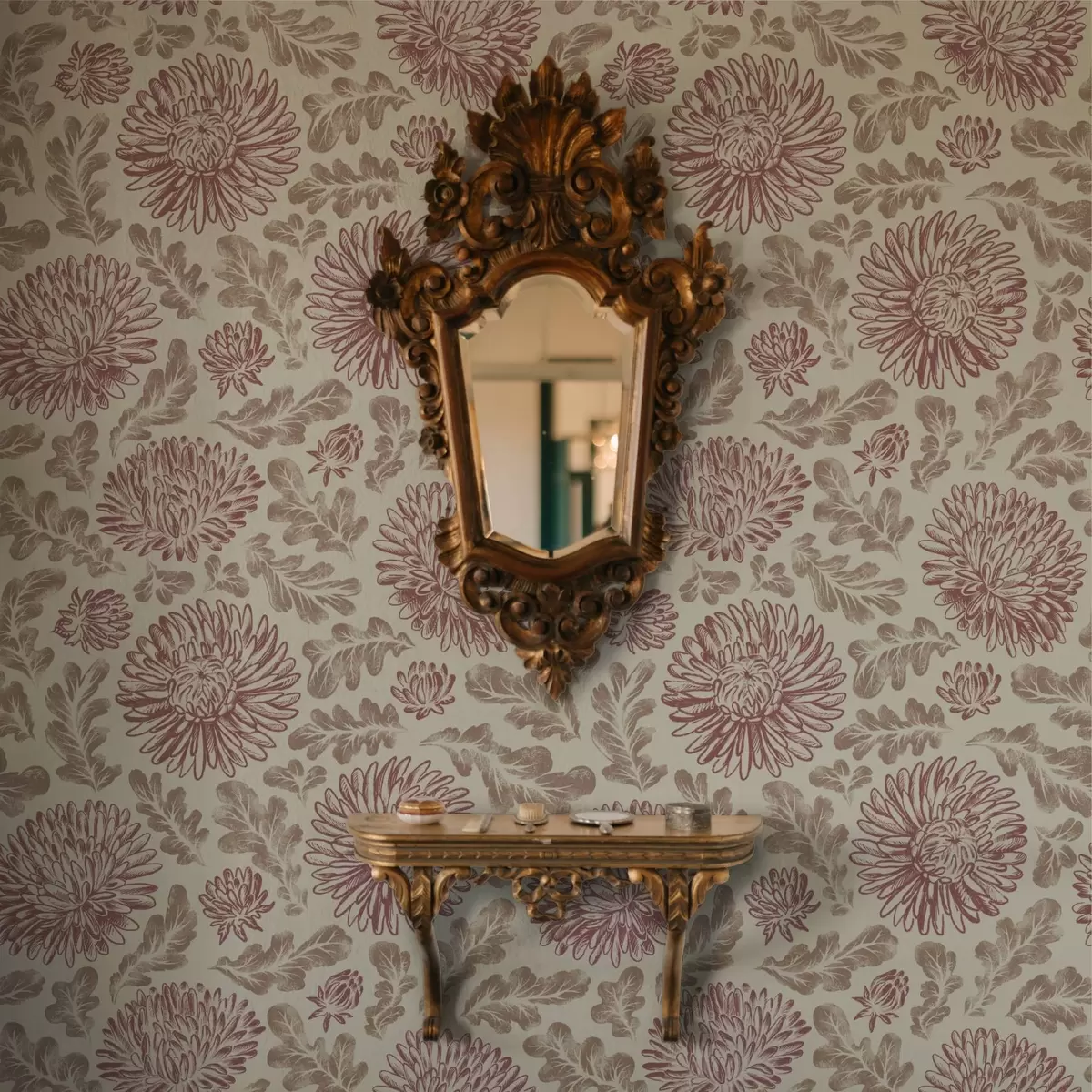 Tapetes Krizantēmas ar vīna akcentiem uz krēmkrāsas fona Nr. a00840v1