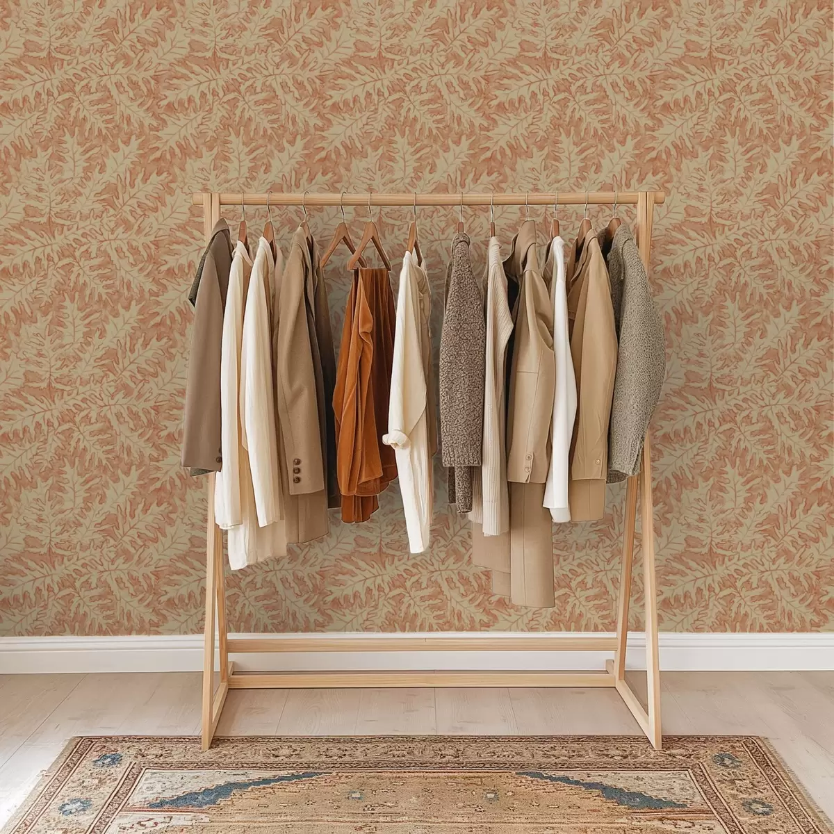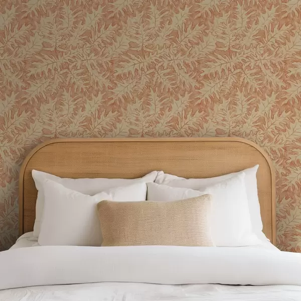 Tapetes Lielas ozola lapas terakotā uz krēmkrāsas fona Nr. a00846