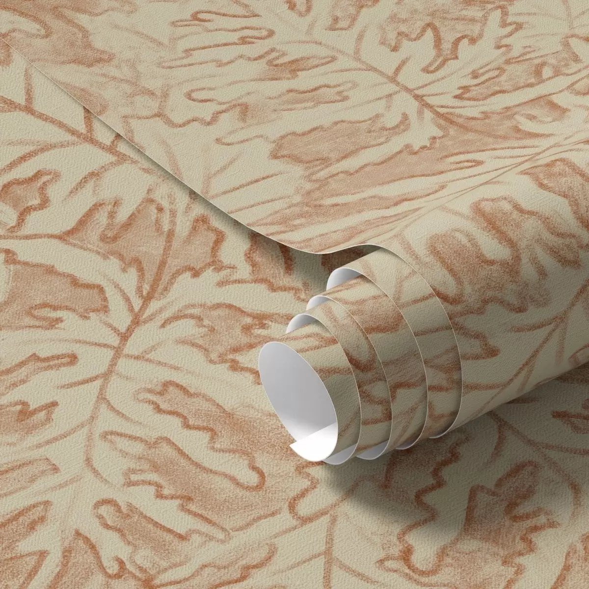 Tapetes Lielas ozola lapas terakotā uz krēmkrāsas fona Nr. a00846