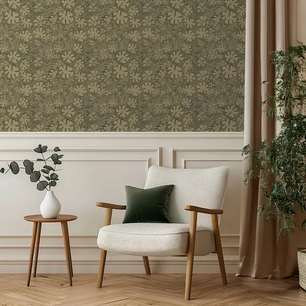 Tapetes Lauka lapas un zāle pelēkā-olīvu toņos Nr. a00847v1