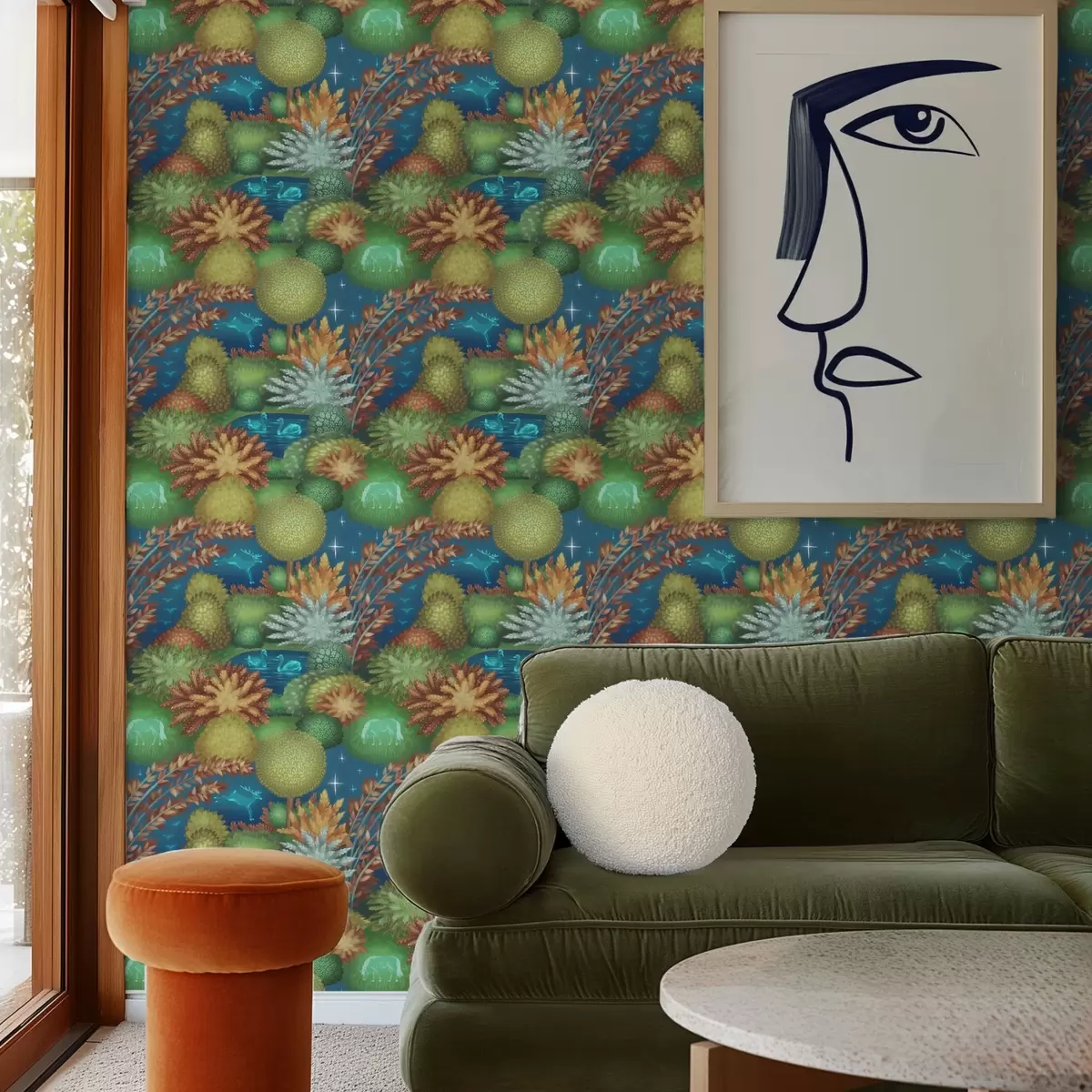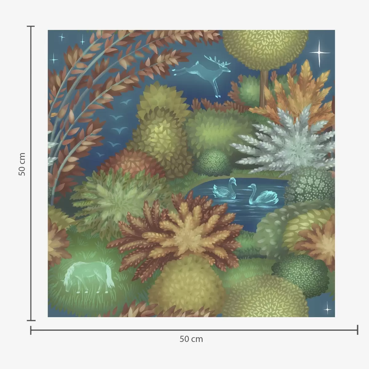 Tapetes Pasaku nakts dārzs ar ezeru un mirdzošiem dzīvniekiem Nr. a00851