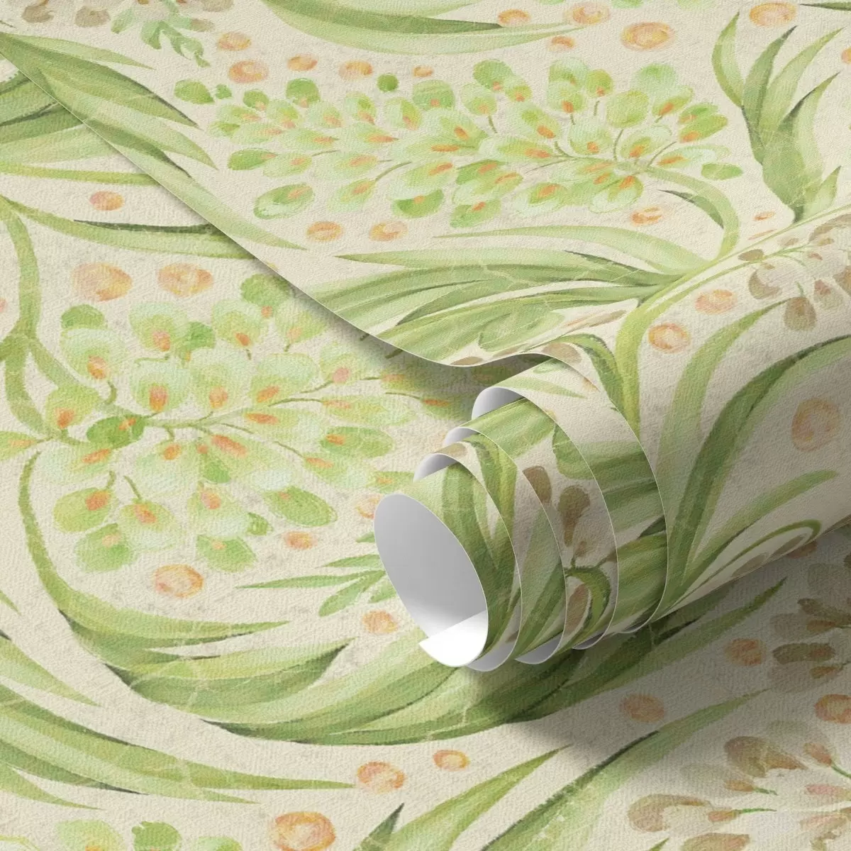 Tapetes Viegli ziedu raksti maigās zaļās nokrāsās a00853