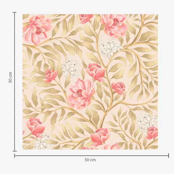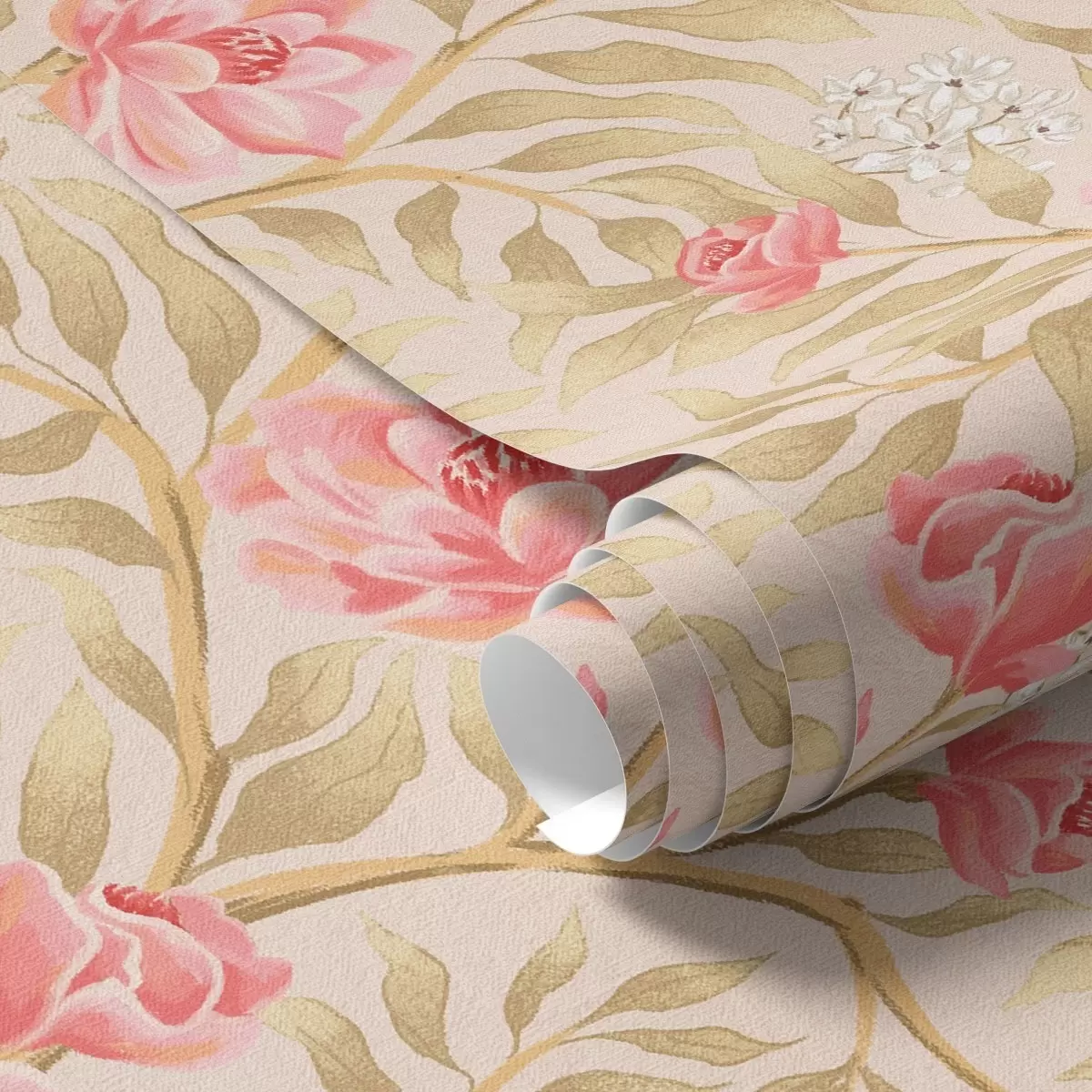 Tapetes Rozā ziedi, balti ziedi un okera toņu lapas Nr. a00855