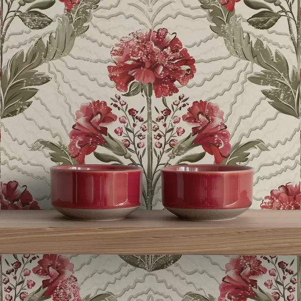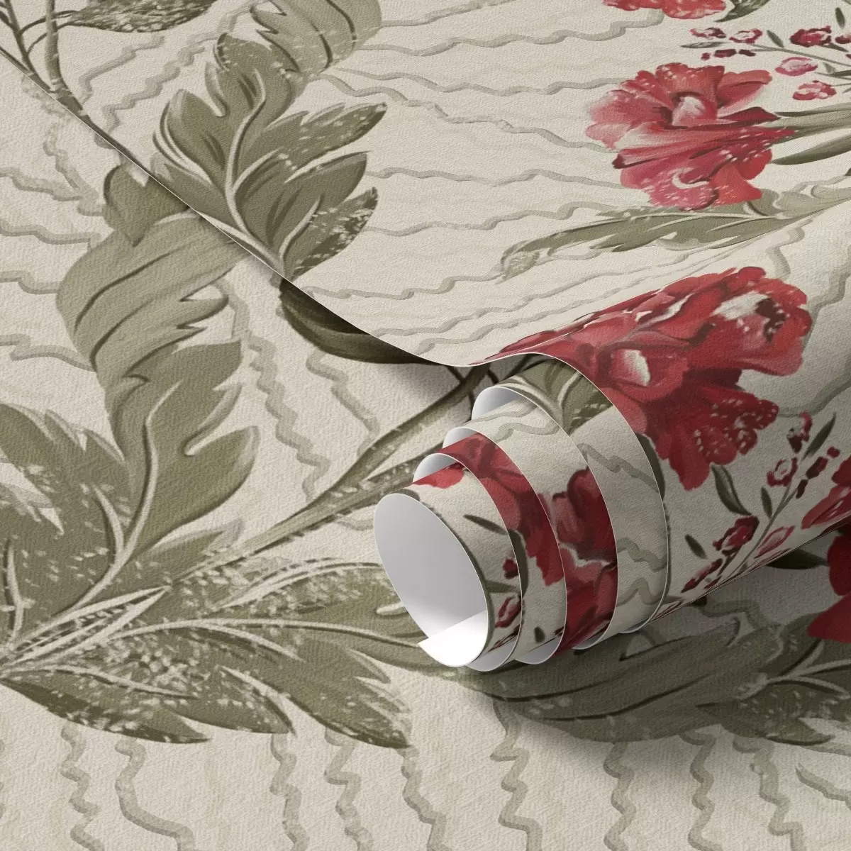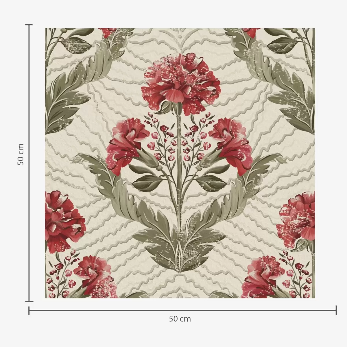 Tapetes Lielas sarkanas peonijas ar grafisku fonu, krēmkrāsas pamatne Nr. a00857