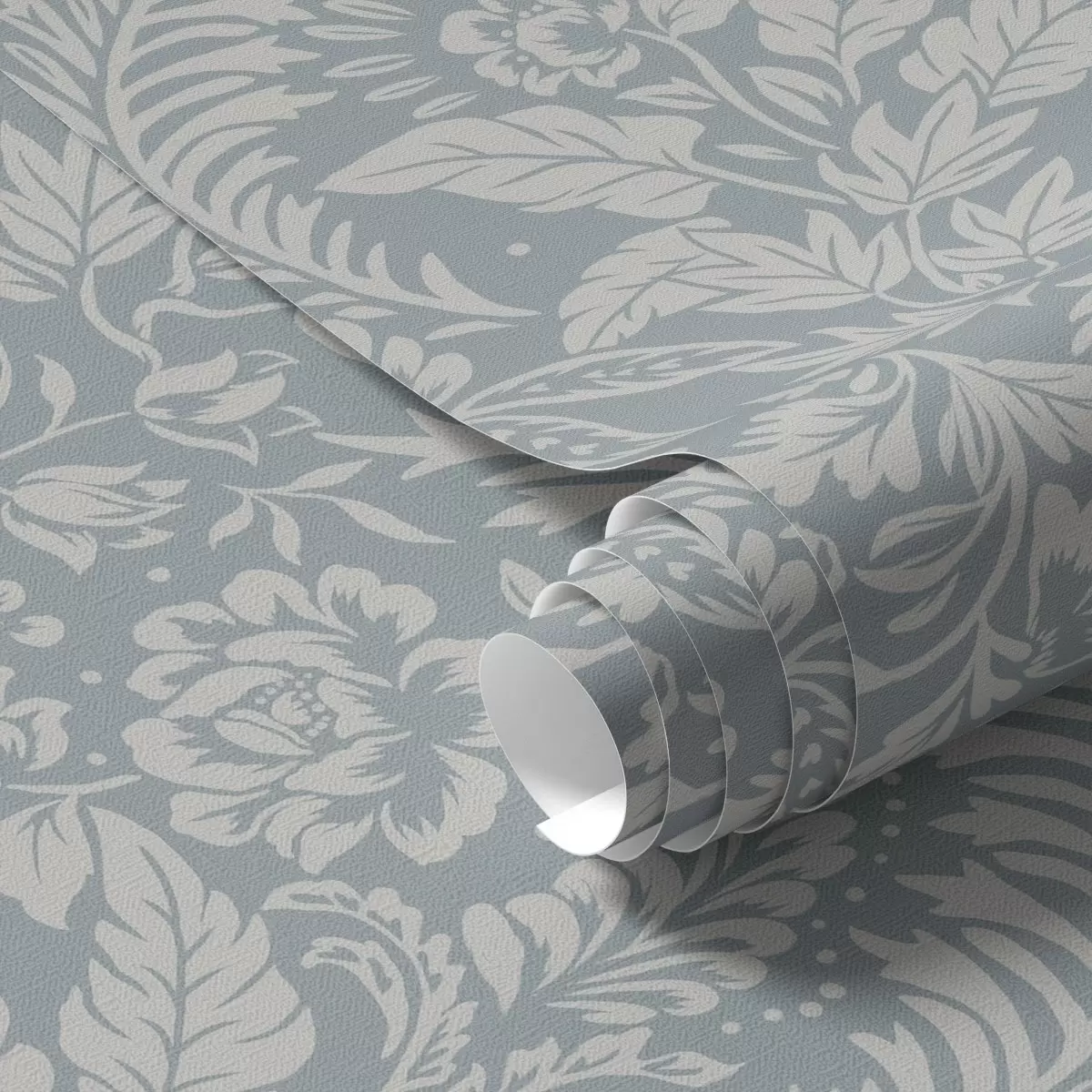 Tapetes Monochroms ziedu raksts uz pelēkā-zila fona Nr. a00859