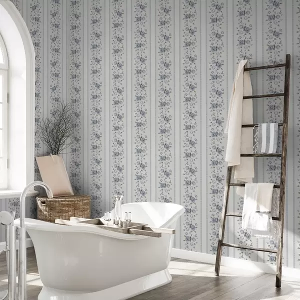 Tapetes Zilas rozes vertikālās joslās uz gaiša fona Nr. a00860
